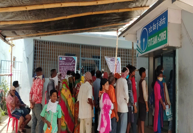 ଗଞ୍ଜାମ, ୨୬।୫(ଡି.ଏନ୍.ଏ.): ଗଞ୍ଜାମ ଜିଲାରେ ଦିନକୁ ଦିନ କରୋନା କାୟା ବିସ୍ତାର କରିଚାଲିଛ। ଫଳରେ ଜିଲାରେ ସଂକ୍ରମିତଙ୍କ ସଂଖ୍ୟା ବଢ଼ିବାରେ ଲାଗିଛି l ଏଥିପାଇଁ ଜିଲା ପ୍ରଶାସନ ପକ୍ଷରୁ ମାକ୍ସ ଓ ସାମାଜିକ ଦୂରତା ଅବଲମ୍ବନକୁ ଅଧିକ ଗୁରୁତ୍ୱ ଦିଆଯାଉଛି। କିନ୍ତୁ କିଛି ସ୍ଥାନରେ ଏହାର ବ୍ୟତିକ୍ରମ ହେଉଥିବା ଦେଖିବାକୁ ମିଳିଛି। ମଙ୍ଗଳବାର ସାଢେ ଦଶଟାରେ ଗଞ୍ଜାମ ଷ୍ଟେଟ ବ୍ୟାଙ୍କ ବାହାରେ ଗ୍ରାହକଙ୍କ ପ୍ରବଳ ଭିଡ଼ ଜମିଥିବା ଦେଖିବାକୁ ମିଳିଥିଲା l ଶନି, ରବି ଓ ସୋମବାର ବ୍ୟାଙ୍କ ବନ୍ଦ ଥିବା ଯୋଗୁ ଭିଡ଼ ଥିବା ବ୍ୟାଙ୍କ ପକ୍ଷରୁ କୁହାଯାଇଛି l ଅନ୍ୟପଟେ ଟଙ୍କା ଜମା ଓ ଉଠାଣ ପାଇଁ ଗୋଟିଏ ମାତ୍ର କାଉଣ୍ଟର ଖୋଲା ଯାଇଥିବା ଯୋଗୁ ଲୋକମାନେ ଲମ୍ବା ଧାଡିରେ ଠିଆ ହେଉଛନ୍ତି l ଏଣୁ ଲୋକଙ୍କ ଭିଡ଼କୁ ଆଖିରେ ରଖି ବିକଳ୍ପ ବ୍ୟବସ୍ଥା ଗ୍ରହଣ କରିବାକୁ ସ୍ଥାନୀୟ ଜନ ସାଧାରଣ ଦାବି କରିଛନ୍ତି l