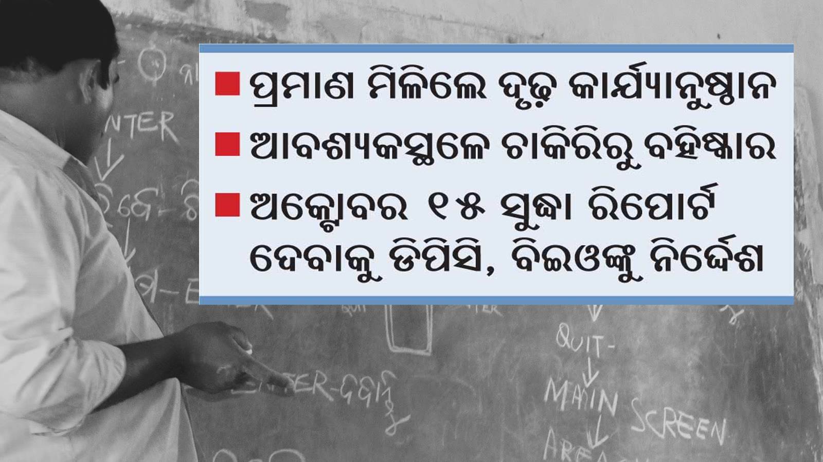 ନିଯୁକ୍ତି ସମୟରେ କେତେଜଣ ଶିକ୍ଷକ ଜାଲ୍ ପ୍ରମାଣପତ୍ର ଦେଇଥିବାବେଳେ ଆଉ କେତେଜଣ ଶିକ୍ଷା ସହାୟକରୁ ନିୟମିତ ଶିକ୍ଷକକୁ ପଦୋନ୍ନତି ହେବାବେଳେ ଏଭଳି କାଗଜପତ୍ର ଦାଖଲ କରିଥିବା ଅଭିଯୋଗ ହୋଇଛି। ଏହାକୁ ନଜରରେ ରଖି ବିଭାଗ ପକ୍ଷରୁ ଏକ ସ୍ବତନ୍ତ୍ର ଯାଞ୍ଚ ପ୍ରକ୍ରିୟା ଆରମ୍ଭ ହେବ। ଜିଲା ପ୍ରକଳ୍ପ ସଂଯୋଜକ(ଡିପିସି) ଏବଂ ବ୍ଲକ୍ ଶିକ୍ଷା ଅଧିକାରୀ(ବିଇଓ) ଏହି ଯାଞ୍ଚ ପ୍ରକ୍ରିୟାରେ ସାମିଲ ହେବେ। ପ୍ରାଥମିକ ପର୍ଯ୍ୟାୟରେ ଶିକ୍ଷକଙ୍କ ଶିକ୍ଷାଗତ ସହ ଟ୍ରେନିଂ ସାର୍ଟିଫିକେଟ ଯାଞ୍ଚ କରାଯିବ। ୨୦୧୧ ଜାନୁୟାରୀ ୧ରୁ ନିଯୁକ୍ତ ତଥା ନିୟମିତ ହୋଇଥିବା ଶିକ୍ଷକ ଓ ଠିକା ଶିକ୍ଷକଙ୍କର ପ୍ରଥମ ପର୍ଯ୍ୟାୟରେ ସାର୍ଟିଫିକେଟ ଯାଞ୍ଚ କରାଯିବ ବୋଲି ବିଭାଗ ପକ୍ଷରୁ କୁହାଯାଇଛି। ସର୍ବଶିକ୍ଷା ଅଭିଯାନର ଜିଲା ପ୍ରକଳ୍ପ ସଂଯୋଜକମାନେ କନିଷ୍ଠ ବା ଠିକା ଶିକ୍ଷକଙ୍କର ସାର୍ଟିଫିକେଟ ସହ ମାର୍କଶିଟ୍ ଯାଞ୍ଚ କରିବେ। ସେହିଭଳି ନିୟମିତ ଏବଂ ଏକ୍ସ କ୍ୟାଡର୍ ବା ଲେଭଲ୍ ୫ ଶିକ୍ଷକମାନଙ୍କର ସାର୍ଟିଫିକେଟ ଯାଞ୍ଚ ଦାୟିତ୍ୱ ବିଇଓ ନେବେ। ଯାଞ୍ଚ ପରେ ପ୍ରାଥମିକ ଶିକ୍ଷା ନିର୍ଦ୍ଦେଶକଙ୍କୁ ସେମାନେ ରିପୋର୍ଟ ପ୍ରଦାନ କରିବେ। ଏଥିପାଇଁ ଏକ ରାଜ୍ୟସ୍ତରୀୟ କମିଟି ଗଠନ କରାଯାଇ ନଜର ରଖାଯିବ ଓ ଆବଶ୍ୟକ ପଡ଼ିଲେ ସାର୍ଟିଫିକେଟର ସତ୍ୟତା ଜାଣିବାକୁ ଏକ ଟିମ୍ ରାଜ୍ୟ ବାହାରେ ଥିବା ଶିକ୍ଷାନୁଷ୍ଠାନ ଓ ବିଶ୍ୱବିଦ୍ୟାଳୟକୁ ଯିବେ। ସେହିଭଳି ଅଭିଯୋଗ ଆସିଲେ ୨୦୧୧ ପୂର୍ବରୁ ନିଯୁକ୍ତ ତଥା ନିୟମିତ ପଦବୀ ପାଇଥିବା ଶିକ୍ଷକମାନଙ୍କର ସାର୍ଟିଫିକେଟ ମଧ୍ୟ ଯାଞ୍ଚ କରାଯିବ। ଜାଲ୍ ସାର୍ଟିଫିକେଟର ପ୍ରମାଣ ମିିଳିଲେ ସମ୍ପୃକ୍ତ ଶିକ୍ଷକଙ୍କ ବିରୋଧରେ ଏଫ୍ଆଇଆର୍ ଦିଆଯିବା ସହ ଚାକିରିରୁ ବହିଷ୍କାର କରାଯିବ। ଉଭୟ ଡିପିସି ଏବଂ ବିଇଓମାନଙ୍କୁ ସେପ୍ଟେମ୍ବର ୩୦ ସୁଦ୍ଧା ଯାଞ୍ଚ ପ୍ରକ୍ରିୟା ଶେଷ କରି ଅକ୍ଟୋବର ୧୫ ସୁଦ୍ଧା ଗଣଶିକ୍ଷା ବିଭାଗକୁ ରିପୋର୍ଟ ଦେବାକୁ ନିର୍ଦ୍ଦେଶ ଦିଆଯାଇଛି।