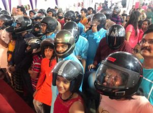 ସୂଚନାଯୋଗ୍ୟ, ସୁରଟର ବେସୁ ଅଞ୍ଚଳ ନିକଟରେ ଥିବା ନନ୍ଦିନୀ-୧ରେ ଅନ୍ୟ ପେଣ୍ଡାଲମାନଙ୍କ ଭଳି ଭଗବାନ ଗଣେଶଙ୍କୁ ବିଦାୟ ଦେବା ପାଇଁ ଆଳତୀର ଆୟୋଜନ କରାଯାଇଥିଲା। ଏଠାରେ ଅତ୍ୟଧିକ ଭକ୍ତ ହେଲ୍‌ମେଟ ପିନ୍ଧି ପହଞ୍ଚିଥିଲେ। ତେବେ ସେଠାରେ ଏକ ମହିଳା ହେଲ୍‌ମେଟ ପିନ୍ଧି ଠାକୁରଙ୍କ ଆଳତୀ କରିଥିଲେ। ଏହାଦ୍ୱାରା ସେ ଲୋକଙ୍କୁ ହେଲ୍‌ମେଟ ପିନ୍ଧିବା ନେଇ ସଚେତନତା କରାଉଛନ୍ତି। ସରକାର ଟ୍ରାଫିକ ନିୟମରେ ଯେଉଁ ପରିବର୍ତ୍ତନ ଆଣିଛନ୍ତି ତାହା ଲୋକଙ୍କ ସୁରକ୍ଷା ପାଇଁ ବୋଲି ସେ କହିଛନ୍ତି।