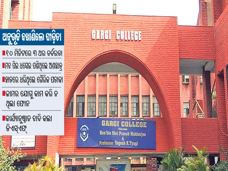 ୟୁନିଭର୍ସିଟିର ଗାର୍ଗୀ କଲେଜରେ ବାର୍ଷିକ ସାଂସ୍କୃତିକ ମହୋତ୍ସବ ‘ରେଭରି’ ଚାଲିଥିଲା। ଗତ ୬ ତାରିଖରେ ଏହାର ତୃତୀୟ ଦିନ ମହୋତ୍ସବ ପାଳନ କରାଯାଉଥିବାବେଳେ ଘଟିଥିଲା ଅଭାବନୀୟ ଘଟଣା। ରାଜନୀତି ବିଜ୍ଞାନର ଜଣେ ଦ୍ୱିତୀୟ ବର୍ଷ ଛାତ୍ରୀ ନିଜ ନାମ ଗୋପନ ସର୍ତ୍ତରେ ତାଙ୍କ ଅନୁଭୂତି ବଖାଣିଛନ୍ତି। ସେ କହିଛନ୍ତି, ସେଦିନ ସନ୍ଧ୍ୟା ପ୍ରାୟ ୬ଟାରେ କଲେଜ ପଡ଼ିଆରେ ଏଭଳି ଭିଡ଼ ଲାଗିଥିଲା ଯେ, କିଏ କୁଆଡ଼େ ହଲ୍ଚଲ୍ ହେବା ପାଇଁ ମଧ୍ୟ ସ୍ଥାନ ନ ଥିଲା। ମୋ ସହ ମୋର ଦୁଇଜଣ ବାନ୍ଧବୀ ଥିଲେ। ଭିଡ଼ ଭିତରେ ମୁଁ ହଜି ନ ଯିବି ବୋଲି ସେମାନେ ମୋ ହାତ ଧରିଥିଲେ। କାରଣ ଜାମର ଯୋଗୁ ପଡ଼ିଆରେ ଫୋନ୍ ଲାଗୁ ନ ଥିଲା। ହଠାତ୍ ପଛପଟୁ ପ୍ରବଳ ଚାପ ଆସିବାରୁ ମୋ ହାତ ଚାପି ହୋଇଯାଇଥିଲା। ୧୦-୧୫ ମିନିଟ ଧରି ମୁଁ ସାଙ୍ଗମାନଙ୍କୁ ପାଇ ନ ଥିଲି। ସେହି ସମୟ ଭିତରେ ମୁଁ ୩ ଥର ଯୌନ ଉତ୍ପୀଡ଼ନର ଶିକାର ହୋଇଥିଲି। କେହି କେହି ମୋ ଦେହକୁ ଭିଡ଼ି ଧରିଥିଲେ। ଏପରି କି କେହି ଜଣେ ସ୍କର୍ଟ ଭିତରେ ହାତ ପୂରାଇ ଦେଇଥିଲେ। ଅସମ୍ଭାଳ ଭିଡ଼ ଯୋଗୁ ମୁଁ ସେଥିରୁ ମୁକୁଳି ପାରି ନ ଥିଲି। ୧୫ ମିନିଟ ପରେ ମୁଁ ବହୁ କଷ୍ଟରେ ବାହାରିବାରେ ସକ୍ଷମ ହୋଇଥିଲି। ଷ୍ଟଲ୍ ପଛପଟ ଏକ ଖାଲି ସ୍ଥାନରେ ପହଞ୍ଚତ୍ବା ପରେ ଯାହା ଦେଖିଲି ସେଥିରେ ଚକିତ ହୋଇଯାଇଥିଲି। ଜଣେ ୩୦-୩୫ ବର୍ଷୀୟ ଯୁବକ ମୋତେ ଦେଖି ହସ୍ତମୈଥୁନ ଆରମ୍ଭ କରିଦେଇଥିଲେ। ସେଠୁ ଦୌଡ଼ି ପଳାଇଆସିଥିଲି ବୋଲି ଛାତ୍ରୀ ଜଣକ କହିଛନ୍ତି।