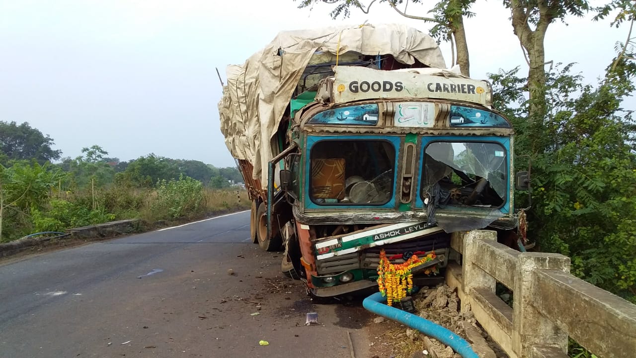 ନିରାକାରପୁର,୨୧ା୪(ଡି.ଏନ୍.ଏ.) : ଖୋର୍ଦ୍ଧା ଜିଲା ରାମେଶ୍ୱର ଛକ ନିକଟସ୍ଥ ୧୬ ନଂ ଜାତୀୟ ରାଜପଥରେ ଥିବା ମଲାଶୁଣୀ ନଦୀ ଗାର୍ଡଓ୍ବାଲ୍ରେ ବ୍ରହ୍ମପୁରରୁ ଭୁବନେଶ୍ୱର ଯାଉଥିବା ଏକ କବାଡ଼ିଆ ବୋଝେଇ ଟ୍ରକ ଓଆର ୧୫ କେ ୩୬୮୩ ରବିବାର ସକାଳେ ପିଟି ହୋଇଯାଇଛି। ଫଳରେ ଟ୍ରକ୍ଟି ଚୁର୍ମାର ହୋଇଯାଇଛି। ଖବର ପାଇ ଜଙ୍କିଆ ପୋଲିସ ଘଟଣାସ୍ଥଳରେ ପହଞ୍ଚି ଛାନ୍ଭିନ୍ ଆରମ୍ଭ କରିଛି ଏନେଇ କିଛି ସମୟ ଗାଡ଼ିମୋଟର ଚଳାଚଳ ବ୍ୟାହତ ହୋଇଥିଲା।