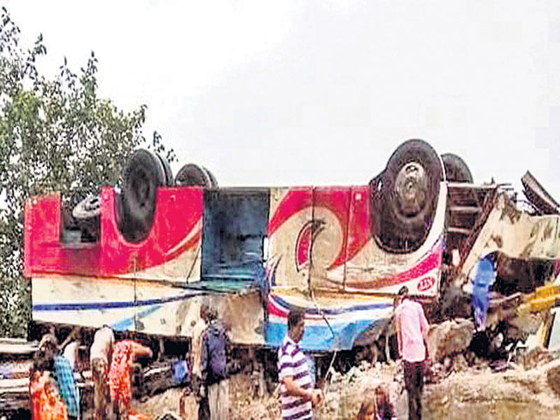 ଅହମଦାବାଦ,୧ା୧୦: ଗୁଜରାଟର ବନସକଣ୍ଠା ଜିଲାରେ ସୋମବାର ଏକ ବସ୍ ଓଲଟିପଡ଼ିବାରୁ ୨୧ ଜଣଙ୍କ ମୃତ୍ୟୁ ହେବା ସହ ୫୦ ଆହତ ହୋଇଛନ୍ତି। ଅମ୍ବାଜି ସହର ନିକଟବର୍ତ୍ତୀ ତ୍ରିଶୁଳିଆ ଘାଟଠାରେ ଏହି ମର୍ମନ୍ତୁଦ ଦୁର୍ଘଟଣା ଘଟିଛି। ପ୍ରବଳ ବର୍ଷା ହେଉଥିବାରୁ ପାହାଡିଆ ରସ୍ତାରେ ଡ୍ରାଇଭର ଭାରସାମ୍ୟ ହରାଇଥିଲା। ଫଳରେ ୭୦ ଯାତ୍ରୀଙ୍କୁ ନେଇ ଯାଉଥିବା ଲକ୍ଜୁରୀ ଘରୋଇ ବସ୍ଟି ଓଲଟି ପଡିଥିଲା ବୋଲି ବନସ୍କଣ୍ଠା ଏସ୍ପି ଅଜିତ୍ ରାଜିଆନ୍ କହିଛନ୍ତି। ମୃତକଙ୍କ ଲାଗି ପ୍ରଧାନମନ୍ତ୍ରୀ ନରେନ୍ଦ୍ର ମୋଦି ଗଭୀର ଶୋକ ବ୍ୟକ୍ତ କରିଛନ୍ତି।