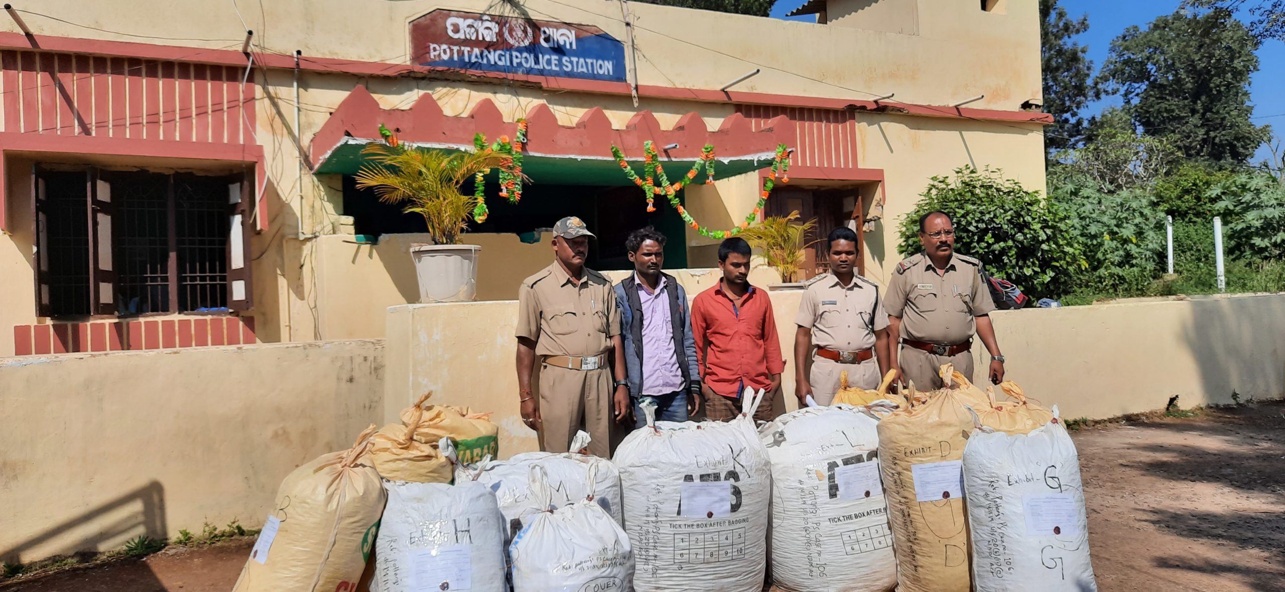 କୋରାପୁଟ,୧୫।୧୧(ସ୍ବ.ପ୍ର.): କୋରାପୁଟ ଜିଲା ପଟ୍ଟାଙ୍ଗିଠାରେ ଶୁକ୍ରବାର ଏକ ଟ୍ରକରୁ ସ୍ଥାନୀୟ ପୋଲିସ ଦ୍ୱାରା ୪ କ୍ୱିଣ୍ଟାଲରୁ ଊର୍ଦ୍ଧ୍ୱ ଗଞ୍ଜେଇ ଜବତ ହୋଇଛି। ଗୋଖାଦ୍ୟ ସାମଗ୍ରୀ ନେଇ ଆନ୍ଧ୍ରରୁ କୋରାପୁଟ ଆଡ଼କୁ ଯାଉଥିବା ଟ୍ରକରେ ୯୦ଟି ପ୍ୟାକେଟ୍ରୁ ଉକ୍ତ ପରିମାଣର ଗଞ୍ଜେଇ ଜବତ ହୋଇଥିବା ପୋଲିସ ପକ୍ଷରୁ କୁହାଯାଇଛି। ଏହି ଘଟଣାରେ ବିହାର ରାଜ୍ୟର ୨ଜଣ ବ୍ୟକ୍ତିଙ୍କୁ ଗିରଫ କରାଯାଇଛି। କୌଣସି ସୂତ୍ରରୁ ଖବରପାଇ ପଟ୍ଟାଙ୍ଗି ପୋଲିସ ଜଗି ରହିଥିଲା। ତେବେ ଆଜି ସକାଳେ ଏହି ଟ୍ରକଟି ପଟାଙ୍ଗି ଅତିକ୍ରମ କରିବାବେଳେ ପୋଲିସ ଅଟକାଇ ଯାଞ୍ଚ କରିଥିଲା। ଉକ୍ତ ୯୦ଟି ପ୍ୟାକେଟରୁ ୪ କ୍ୱିଣ୍ଟାଲ ୬୩ କେଜି ଗଞ୍ଜେଇ ଜବତ କରାଯାଇଥିଲା ା ପୋଲିସ ପକ୍ଷରୁ ଏହି ଘଟଣାର ଅଧିକ ଅନୁସନ୍ଧାନ ଜାରିରହିଛି ା
