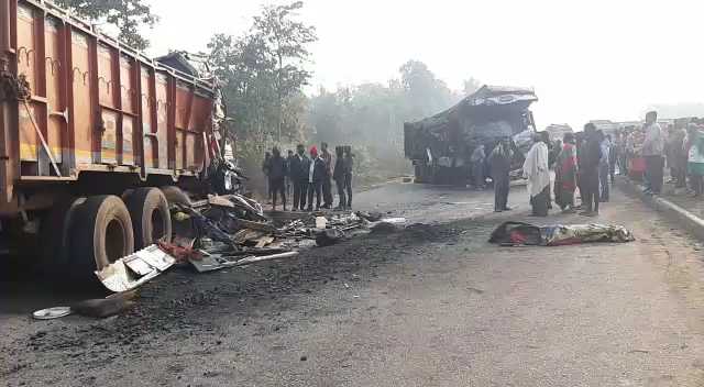 କେନ୍ଦୁଝର,୨।୨(ସ୍ବ.ପ୍ର.): କେନ୍ଦୁଝର ଜିଲା ଘଟଗାଁ ବ୍ଲକ ଗୋପାଳପୁର ଚାନ୍ଦପଶି ନିକଟ ୨୦ନଂ ଏନ୍ଏଚ୍ରେ ଶନିବାର ବିଳମ୍ବିତ ରାତିରେ ଦୁଇଟି ଟ୍ରକ୍ ମୁହାଁମୁହିଁ ଧକ୍କା ହେବା ଯୋଗୁ ଦୁଇଜଣ ଚାଳକଙ୍କ ମୃତ୍ୟୁ ଘଟିଛି। ମୃତକଙ୍କ ପରିଚୟ ମିଳିପାରିନାହିଁ। ଖବରପାଇ ପୋଲିସ ଘଟଣାସ୍ଥଳରେ ପହଞ୍ଚି ତଦନ୍ତ ଆରମ୍ଭ କରିଛି।