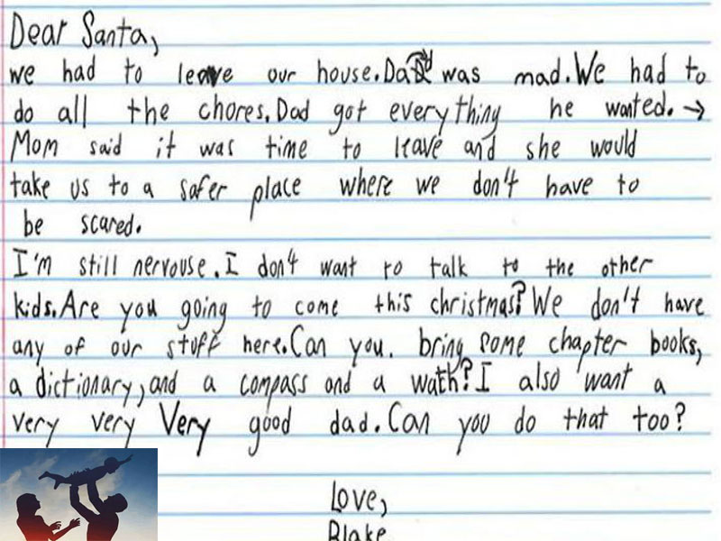 ଟେକ୍ସାସ୍,୨୫।୧୨: ବନଦିନ ଅବସରରେ ଟେକ୍ସାସ୍ର ଜଣେ ୭ ବର୍ଷର କୋମଳମତି ବାଳକ ତାଙ୍କ ପାଇଁ ଉପହାର ଭାବେ ଜଣେ ଭଲ ପିତା ଆଣିଦେବାକୁ ସାନ୍ତାକ୍ଲଜ୍ଙ୍କୁ ଚିଠି ଲେଖିଛନ୍ତି। ଏବେ ଏହି ଚିଠି ସୋସିଆଲ୍ ମିଡ଼ିଆରେ ଭାଇରାଲ ହେବାରେ ଲାଗିଛି। ଘରୋଇ ହିଂସା ଯୋଗୁ ମାଙ୍କ ସହିତ ସେଲ୍ଟର ହୋମ୍ରେ ରହୁଥିବା ବ୍ଲେକ୍ ନାମକ ଜଣେ ବାଳକ ଏପରି କରିଛନ୍ତି। ଏହି ଚିଠିକୁ ସେଫ୍ ହେଭେନ୍ ଅଫ୍ ଟରଣ୍ଟୋ କାଉଣ୍ଟି ନାମକ ସ୍ବେଚ୍ଛାସେବୀ ସଂଗଠନ ପକ୍ଷରୁ ସୋସିଆଲ ମିଡ଼ିଆରେ ଡିସେମ୍ବର ୧୮ରେ ଶେୟାର କରାଯାଇଥିଲା। ଇତିମଧ୍ୟରେ ଏହାକୁ ୨୭ ଶହରୁ ଅଧିକ ଲାଇକ୍ ମିଳିଥିବାବେଳେ ୫୮୩ରୁ ଅଧିକ କମେଣ୍ଟ ମିଳିଛି। ସେହିପରି ଏହାକୁ ୨୭ ଶହରୁ ଅଧିକ ଥର ଶେୟାର କରାଯାଇଛି।