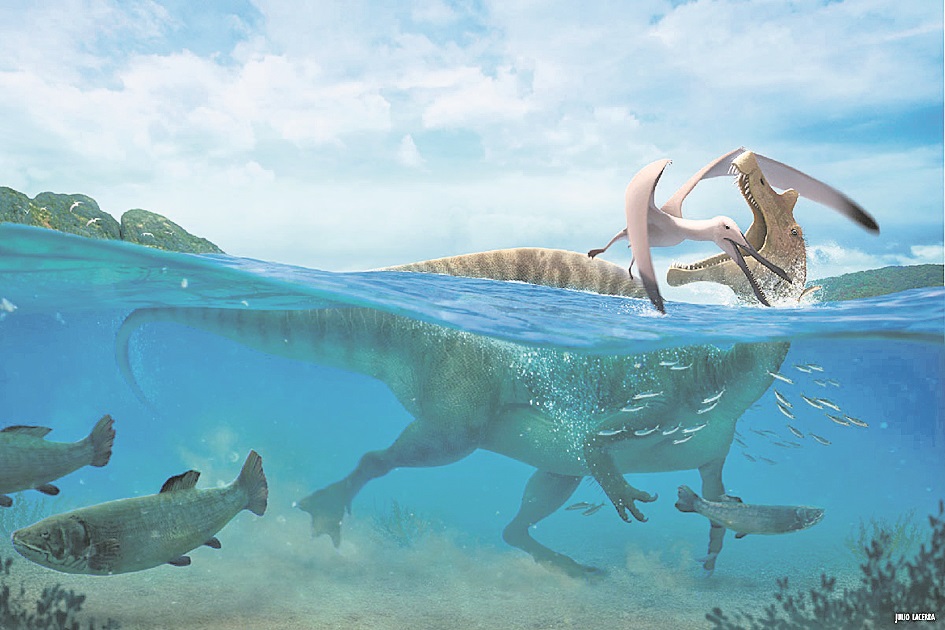 ଡାଇନୋସରକୁ ନେଇ ଏକ ନୂଆ ତଥ୍ୟ ପ୍ରକାଶ କରିଛନ୍ତି ବ୍ରାଜିଲ୍ର ଗବେଷକମାନେ। ସେମାନେ କହିଛନ୍ତି ଯେ, ଡାଇନୋସର କେବଳ ଏକ ସ୍ଥଳଚର ପ୍ରାଣୀ ନ ଥିଲା। ସେଗୁଡ଼ିକ ଭିତରୁ ଏମିତି କିଛି ପ୍ରଜାତି ଥିଲେ, ଯେଉଁଗୁଡ଼ିକ ଉଭୟ ସ୍ଥଳଚର ଓ ଜଳଚର ପ୍ରାଣୀ ଥିଲେ। ଏହି ଉଭୟଚର ଡାଇନୋସରକୁ ସେମାନେ ‘ସ୍ପିନୋସର’ ବୋଲି ନାମକରଣ କରିଛନ୍ତି। ଏହି ସ୍ପିନୋସର ପ୍ରଜାତିର ଡାଇନୋସରର ଶରୀର ଗଠନ ସମ୍ପୂର୍ଣ୍ଣ ଭିନ୍ନ ଧରଣର ଥିଲା। ଏମାନଙ୍କ ଶରୀରରେ ଲୋମ ପରିବର୍ତ୍ତେ ଅତି ଛୋଟଛୋଟ କାତି ରହିଥିଲା। ଫଳରେ ସେଗୁଡ଼ିକ ଖୁବ୍ ଭଲଭାବେ ଜଳ ଭିତରେ ଗତି କରିପାରୁଥିଲେ। ପୁଣି ମାଛ ବା ଅନ୍ୟ ଜଳଚର ପ୍ରାଣୀଙ୍କ ଭଳି ଏମାନେ ପାଣିରୁ ନିଜ ପାଇଁ ଆବଶ୍ୟକ ଅମ୍ଳଜାନ ସଂଗ୍ରହ କରି ପାରୁଥିଲେ। ବିଶେଷକରି ଆଫ୍ରିକା ଅଞ୍ଚଳରେ ଏ ଧରଣର ଡାଇନୋସର ବହୁଳ ଭାବରେ ଦେଖିବାକୁ ମିଳୁଥିବା ଗବେଷକ ଦଳର ମୁଖ୍ୟ ଫ୍ରାନ୍ଜ ଆନ୍ଥୋନି ପ୍ରକାଶ କରିଛନ୍ତି। ସେ ଆହୁରି କହିଛନ୍ତି ଯେ,ଏଗୁଡ଼ିକ ସମୁଦ୍ରର ଶେଷସ୍ତର ପର୍ଯ୍ୟନ୍ତ ଯାଇ ଖାଦ୍ୟ ଶିକାର କରିପାରୁଥିଲେ।