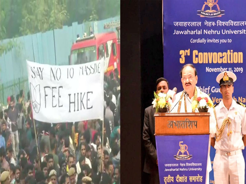 ନୂଆଦିଲ୍ଲୀ,୧୧।୧୧: ଜେଏନ୍ୟୁର ଦୀକ୍ଷାନ୍ତ ସମାରୋହ ସୋମବାର ସମ୍ପନ୍ନ ହୋଇଛି। ବିଶ୍ୱବିଦ୍ୟାଳୟ କ୍ୟାମ୍ପସ୍ ବାହାରେ ଶିକ୍ଷାର୍ଥୀ ହଷ୍ଟେଲ୍ ଫି ବୃଦ୍ଧି ଏବଂ ଡ୍ରେସ୍ କୋଡ୍ ନେଇ ବିକ୍ଷୋଭ ପ୍ରଦର୍ଶନ କରିଛନ୍ତି। ଦୀକ୍ଷାନ୍ତ ଉତ୍ସବରେ ଉପରାଷ୍ଟ୍ରପତି ଭେଙ୍କିୟା ନାଇଡୁ ଏବଂ ମାନବ ସମ୍ବଳ ବିକାଶ ମନ୍ତ୍ରୀ ରମେଶ ପୋଖରିୟାଲ ଯୋଗଦେଇଛନ୍ତି। ଫି ବୃଦ୍ଧି କରାଯାଇଥିବାବେଳେ ଦୀକ୍ଷାନ୍ତ ସମାରୋହର କୌଣସି ଆବଶ୍ୟକତା ନାହିଁ ବୋଲି ସେମାନେ ଅଭିଯୋଗ କରିଛନ୍ତି। ହଷ୍ଟେଲ୍ରେ ରହିବା ମାଗଣା କରାଯିବା ଏବଂ ହଷ୍ଟେଲରୁ ଡ୍ରେସ୍ କୋଡ୍ ଉଠାଇ ନେବାକୁ ଶିକ୍ଷାର୍ଥୀ ଦାବି କରିଛନ୍ତି।