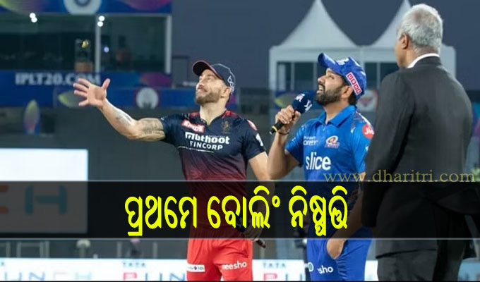 ବେଙ୍ଗାଲୁରୁ,୨।୪: ଆଇପିଏଲର ପଞ୍ଚମ ମ୍ୟାଚରେ ପାଞ୍ଚ ଥର ଚାମ୍ପିଅନ ମୁମ୍ବାଇ ଇଣ୍ଡିଆନ୍ସ ରୟାଲ ଚ୍ୟାଲେଞ୍ଜର୍ସ ବେଙ୍ଗାଲୁରୁ (ଆରସିବି) ଭେଟୁଛି। ଦୁଇ ଦଳ ମଧ୍ୟରେ ଏହି ମ୍ୟାଚ ବେଙ୍ଗାଲୁରୁର ଏମ ଚିନ୍ନାସ୍ବାମୀ ଷ୍ଟାଡିୟମରେ ଖେଳାଯାଉଛି। ଏହି ମ୍ୟାଚ୍ରେ ଆରସିବି ଅଧିନାୟକ ଫାଫ ଡୁପ୍ଲେସିସ ଟସ୍ ଜିତି ପ୍ରଥମେ ବୋଲିଂ ନିଷ୍ପତ୍ତି ନେଇଛନ୍ତି। ଆରସିବି ଫାଫ ଡୁପଲେସିସଙ୍କ ବ୍ୟତୀତ ଗ୍ଲେନ ମ୍ୟାକ୍ସୱେଲ, ରିସ ଟୋପଲି ଏବଂ ମାଇକେଲ ବ୍ରେସୱେଲଙ୍କୁ ଚାରିଜଣ ବିଦେଶୀ ଖେଳାଳି ଭାବେ ସାମିଲ କରିଛି। ଏଥି ସହିତ ରୋହିତ ଶର୍ମା ଜୋଫ୍ରା ଆର୍ଚର, ଜେସନ ବେହେରେଣ୍ଡର୍ଫ, ଟିମ ଡେଭିଡ ଏବଂ କାମେରନ ଗ୍ରୀନଙ୍କୁ ଚୟନ କରିଛନ୍ତି।