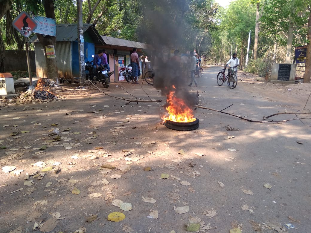 ଟାୟାର ଜାଳି ରାସ୍ତା ବନ୍ଦ କଲେ ଗ୍ରାମବାସୀ