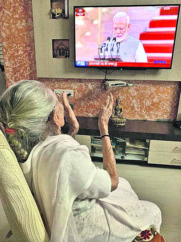 ଅହମଦାବାଦ,୩୧।୫ :ନରେନ୍ଦ୍ର ମୋଦି ଦ୍ୱିତୀୟ ଥର ଲାଗି ପ୍ରଧାନମନ୍ତ୍ରୀ ଭାବେ ଶପଥ ଗ୍ରହଣ କରିଥିବାବେଳେ ତାଙ୍କ ମା’ ହୀରାବେନ୍ ନୂଆଦିଲ୍ଲୀରୁ ୯୦୦ କିଲୋମିଟର ଦୂର ଅହମଦାବାଦର ରାଇସାନ୍ସ୍ଥିତ ଘରେ ବସି ଟିଭିରୁ ଶପଥ ଗ୍ରହଣ ଉତ୍ସବ ଦେଖିଥିଲେ। ଲୋକ ସଭା ନିର୍ବାଚନରେ ଭାଜପାର ବିଶାଳ ବିଜୟ ପରେ ମୋଦି ନିଜ ରାଜ୍ୟ ଗୁଜରାଟକୁ ଦୁଇ ଦିନିଆ ଗସ୍ତରେ ଯାଇଥିବାବେଳେ ମା’ଙ୍କୁ ଭେଟି ଆଶୀର୍ବାଦ ନେଇଥିଲେ। ପ୍ରଧାନମନ୍ତ୍ରୀ ସାନ ଭାଇଙ୍କ ପାଖରେ ତାଙ୍କ ମା’ ରହୁଛନ୍ତି। ଜବାହରଲାଲ୍ ନେହେରୁ ଏବଂ ଇନ୍ଦିରା ଗାନ୍ଧୀଙ୍କ ପରେ ମୋଦି ହେଉଛନ୍ତି ତୃତୀୟ ପ୍ରଧାନମନ୍ତ୍ରୀ ଯିଏ ପୂର୍ଣ୍ଣ ସଂଖ୍ୟାଗରିଷ୍ଠତାର ସହ କ୍ରମାଗତ ଦ୍ୱିତୀୟ ଥର ଲାଗି କ୍ଷମତାକୁ ଫେରିଛନ୍ତି।
