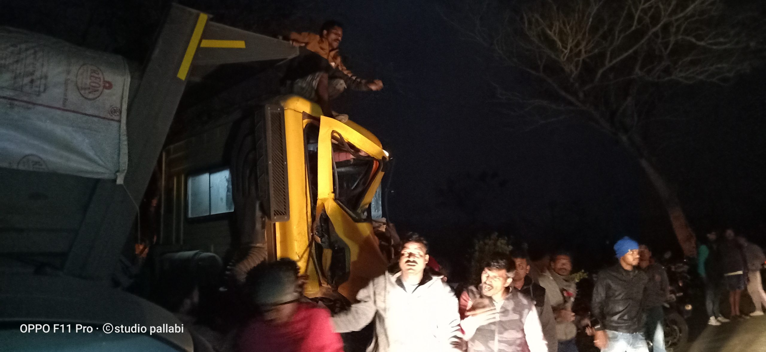 ବଡ଼ସାହି,୧୧ା୧୨(ସ୍ବ.ପ୍ର)-ବଡ଼ସାହି-ବେତନଟୀ ରାସ୍ତାର ଘୁଷୁରିଆ ନିକଟରେ ମଙ୍ଗଳବାର ରାତି ୮ଟା ୪୫ମିନିଟ ସମୟରେ ଏକ ଦୁର୍ଘଟଣାରେ ୪ ଜଣ ଗୁରୁତର ଆହତ ହୋଇଛନ୍ତି। ଏକ ବାଲି ବୋଝେଇ ଡ଼ମ୍ପର ସହିତ ଗୋରୁ ବୋଝେଇ ପିକଅପ ଭ୍ୟାନର ମୁହଁାମୁହଁି ଧକ୍କା ହୋଇଥିଲା। ଆହତମାନଙ୍କୁ ଚିକିତ୍ସା ଲାଗି ବାରିପଦା ଡ଼ାକ୍ତରଖାନାକୁ ପଠାଯାଇଛି ା ଏହି ଦୁର୍ଘଟଣାରେ ୨ଟି ଗୋରୁଙ୍କର ମଧ୍ୟ ମୃତ୍ୟୁ ଘଟିଛି। ଗୋରୁ ବ୍ୟବସାୟୀ ଭାଗିରଥି ଦଣ୍ଡପାଟ ଓ ଚକ୍ରଧର ଦଣ୍ଡପାଟ ଆହତ ହୋଇଥିବା ବେଳେ ଡ଼ମ୍ପର ଚାଳକ ଓ ଅନ୍ୟ ଜଣଙ୍କ ପରିଚୟ ଜଣାପଡ଼ିନାହିଁ।