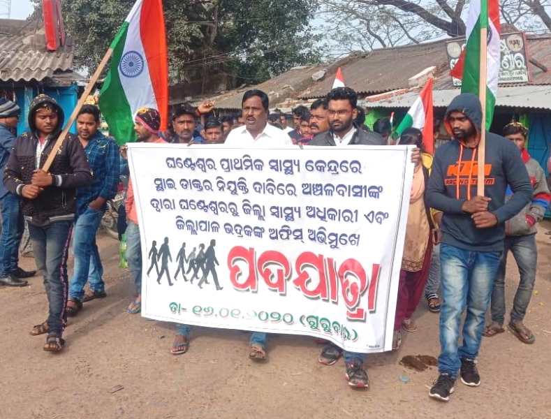 ଭଦ୍ରକ ଅଫିସ, ୧୬।୧- ଭଦ୍ରକ ଜିଲା ଚାନ୍ଦବାଲି ବ୍ଲକ ଘଣ୍ଟେଶ୍ୱର ଅଞ୍ଚଳର କେତେକ ଯୁବଗୋଷ୍ଠୀ ସ୍ଥାନୀୟ ପ୍ରାଥମିକ ସ୍ବାସ୍ଥ୍ୟକେନ୍ଦ୍ରରେ ସ୍ଥାୟୀ ଡାକ୍ତର ନିଯୁକ୍ତି ପାଇଁ ଗୁରୁବାର ୪୦ କି.ମି. ଚାଲି ଚାଲି ଆସି ଜିଲା ପ୍ରଶାସନର ଦୃଷ୍ଟି ଆକର୍ଷଣ କରିଛନ୍ତି। ଘଣ୍ଟେଶ୍ୱର ପ୍ରାଥମିକ ସ୍ବାସ୍ଥ୍ୟକେନ୍ଦ୍ରରେ ଡାକ୍ତର ନିଯୁକ୍ତି ଦିଆଯାଉ ବୋଲି ଦୀର୍ଘଦିନରୁ ଦାବି ହୋଇଆସୁଥିଲା। ଏଥିପାଇଁ ଯୁବଗୋଷ୍ଠୀ ଦସ୍ତଖତ ଅଭିଯାନ କରି ପ୍ରଶାସନର ଦୃଷ୍ଟି ଆକର୍ଷଣ କରିଥିଲେ। କିନ୍ତୁ କୌଣସି ସୁଫଳ ମିଳିଲାନି। ଶେଷରେ ସେମାନେ ଘଣ୍ଟେଶ୍ୱରଠାରୁ ଚାଲି ଚାଲି ତିହିଡ଼ି ରାସ୍ତା ଦେଇ ଭଦ୍ରକରେ ପହଞ୍ଚିଥିଲେ। ଜିଲା ପ୍ରଶାସନ ନିକଟରେ ଡାକ୍ତର ନିଯୁକ୍ତି ପାଇଁ ଲିଖିତ ଦାବିପତ୍ର ପ୍ରଦାନ କରିଛନ୍ତି। ଏହାପରେ ମଧ୍ୟ ପ୍ରଶାସନ ପକ୍ଷରୁ ଡାକ୍ତର ନିଯୁକ୍ତି କରା ନ ଗଲେ ଆନ୍ଦୋଳନାତ୍ମକ ପନ୍ଥା ଗ୍ରହଣ କରାଯିବ ବୋଲି ଚେତାବନୀ ଦିଆଯାଇଛି। ତେବେ ଘଣ୍ଟେଶ୍ୱର ସ୍ବାସ୍ଥ୍ୟକେନ୍ଦ୍ରରେ ଡାକ୍ତର ନିଯୁକ୍ତି ପାଇଁ ୪୦ କି.ମି. ଚାଲି ଚାଲି ଆସି ଭଦ୍ରକରେ ଦାବିପତ୍ର ଦେବା ଘଟଣା ଲୋକଙ୍କ ମନକୁ ଆନ୍ଦୋଳିତ କରିଛି। ରାଜ୍ୟ ସରକାର ୫-ଟି ବ୍ୟବସ୍ଥାକୁ ଗୁରୁତ୍ୱ ଦେଉଥିବାବେଳେ ସ୍ବାସ୍ଥ୍ୟକେନ୍ଦ୍ରରେ ଡାକ୍ତର ପାଇଁ ଲୋକେ ଚାଲି ଚାଲି ପ୍ରଶାସନକୁ ଦାବିପତ୍ର ଦେବା ଘଟଣା ଜିଲାର ରୁଗ୍ଣ ସ୍ବାସ୍ଥ୍ୟ ବ୍ୟବସ୍ଥାକୁ ଅଙ୍ଗୁଳି ନିର୍ଦ୍ଦେଶ କରୁଛି ବୋଲି ବିଭିନ୍ନ ମହଲରେ ଆଲୋଚନା ହେଉଛି। ଏହି ପଦଯାତ୍ରାରେ ଘଣ୍ଟେଶ୍ୱରର ହରିଶ୍ଚନ୍ଦ୍ର ମହାଳିକ, ସ୍ବପ୍ନେଶ୍ୱର ସାହୁ, ଶରତ ସେନାପତି, କାହ୍ନୁକିଶୋର ସାହୁ, ସିଦ୍ଧାର୍ଥ ଶଙ୍କର ନାୟକ, ବିଟୁ ଗୋଚ୍ଛାୟତ, ପୀତାମ୍ବର ମାଝୀ, ଅଭୟ ଦାସ, ମୁନା ପଟ୍ଟନାୟକ, ଅଭୟ ମହାକୁଡ଼ ଓ ନିଶିକାନ୍ତ ବେହେରା ପ୍ରମୁଖ ସାମିଲ ଥିଲେ। ଏହି ଗୋଷ୍ଠୀଙ୍କୁ ପ୍ରତି ଛକ ଓ ବଜାରରେ ସ୍ବାଗତ କରାଯାଉଥିବା ଦେଖିବାକୁ ମିଳିଥିଲା। ସନ୍ଧ୍ୟାରେ ସେମାନେ ଜିଲାପାଳ ଓ ସିଡିଏମ୍ଓଙ୍କୁ ଦାବିପତ୍ର ପ୍ରଦାନ କରିଥିଲେ।