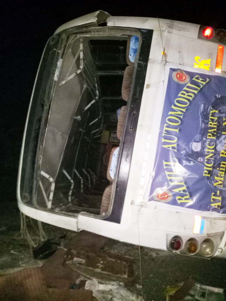 ଦିଗପହଣ୍ଡି,୧୬ା୧୨(ଡି.ଏନ୍.ଏ.)- ଗଞ୍ଜାମ-ଗଜପତି ସୀମାନ୍ତ ତପ୍ତପାଣି ଘାଟି ହନୁମାନ ମନ୍ଦିର ନିକଟରେ ରବିବାର ରାତି ପ୍ରାୟ ସାଢେ ୭ଟାରେ ଏକ ପିକ୍ନିକ୍ ବସ୍ (ନଂ.ଓଡି୨୫ବି-୧୯୯୯) ବାଇକକୁ ଧକ୍କାଦେଇ ଓଲଟି ପଡିଛି। ଏଥିରେ ବାଇକ ଆରୋହୀଙ୍କର ମୃତ୍ୟୁ ଘଟିଥିବାବେଳେ ବସ୍ରେ ଥିବା ୧୫ରୁ ଊର୍ଦ୍ଧ୍ୱ ଯାତ୍ରୀ ଗୁରୁତର ଆହତ ହୋଇଛନ୍ତି। ମୃତକ ହେଲେ ପାଟପୁର ଥାନା ଘାସିଆମ୍ବ ଗ୍ରାମର ଅନୁଜ ମଣ୍ଡଳ।