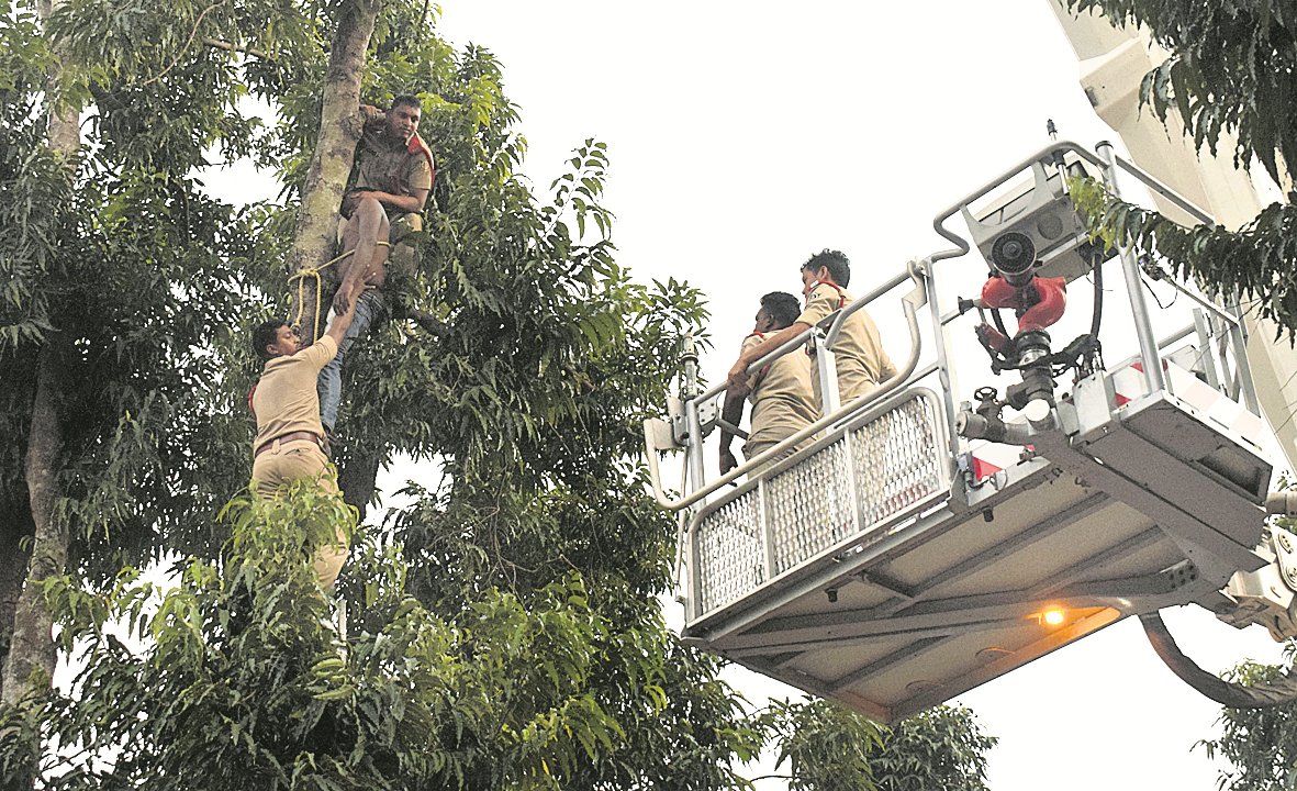 ଭୁବନେଶ୍ୱର,୨୬ା୧୧(ବ୍ୟୁରୋ) : ଉତ୍କଳ ବିଶ୍ୱଦ୍ୟାଳୟର ପରିଜା ଲାଇବ୍ରେରୀ ଛାତ ଉପରୁ ଜଣେ ଯୁବକ ଆତ୍ମହତ୍ୟା ଧମକ ଦେବା ଘଟଣା ମନରୁ ନ ଲିଭୁଣୁ ସୋମବାର ଆଉଏକ ଘଟଣା ଲୋୟର ପିଏମ୍ଜିରେ ଦେଖିବାକୁ ମିଳିଥିଲା। ଆନ୍ଦୋଳନରେ ସାମିଲ୍ ହୋଇଥିବା ଜଣେ ଗାଁସାଥୀ ଦାବି ପୂରଣ ପାଇଁ ୩୦ ଫୁଟ ଉଚ୍ଚ ଗଛକୁ ଚଢି ଆତ୍ମହତ୍ୟା ଧମକ ଦେଇଥିଲେ। ସେ ହେଲେ ବଲାଙ୍ଗୀର ଜିଲା ସଦର ଥାନା ଅଞ୍ଚଳର ମଧୁ ଛତରିଆ। ଖବରପାଇ ଅଗ୍ନିଶମ ବାହିନୀ ତୁରନ୍ତ ଧାରଣାସ୍ଥଳରେ ପହଞ୍ଚତ୍ଥିଲେ। ପ୍ରଥମେ ଦୁଇଜଣ ଅଗ୍ନିଶମ କର୍ମଚାରୀ ସଂଶୟ କୁମାର ଦାହୁଡିଆ ଓ ବିକାଶ କୁମାର ଦାହୁଡ଼ିଆ ଏକ ଶିଡ଼ିରେ ଗଛକୁ ଚଢି ତାଙ୍କୁ କାବୁ କରି ରଖିଥିଲେ। ପରେ ବ୍ରୋନ୍ଟୋ ସ୍କାଏ ଲିଫ୍ଟ ମାଧ୍ୟମରେ ମଧୁଙ୍କୁ ଉଦ୍ଧାର କରାଯାଇ କ୍ୟାପିଟାଲ ହସ୍ପିଟାଲରେ ଭର୍ତ୍ତି କରାଯାଇଥିଲା। ଘଟଣା ନେଇ ମଧୁ କହିଛନ୍ତି, ସେମାନେ ଦୀର୍ଘ ଦିନ ହେବ ଧାରଣା ସ୍ଥଳରେ ଭୋକ ଉପାସରେ ପଡିଥିଲେ ମଧ୍ୟ ସରକାର ତାଙ୍କ ଦୁଃଖ ଶୁଣୁନାହାନ୍ତି। ଦାବି ପୂରଣ ନ ହେଲେ ବଞ୍ଚତ୍କି କ’ଣ କରିବେ ବୋଲି ଭାବି ଆତ୍ମହତ୍ୟା କରିବା ପାଇଁ ନିଷ୍ପତ୍ତି ନେଇଥିଲି।