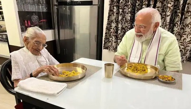 ଦୀର୍ଘ ଦିନ ପରେ ଏକାଠି ମାଆଙ୍କ ସହ ଭୋଜନ କଲେ ମୋଦି