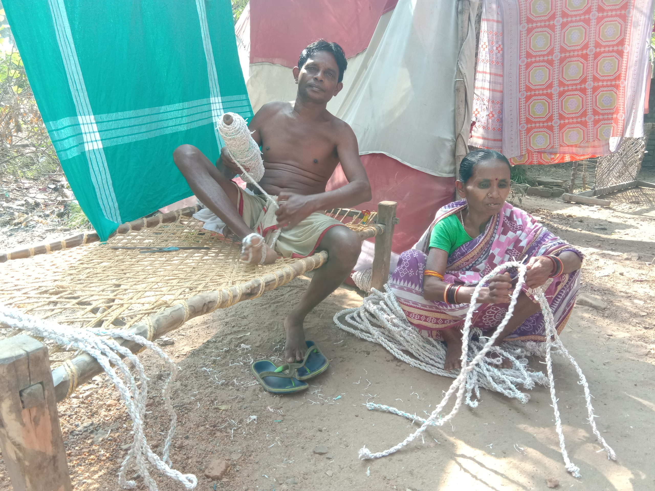 ସୂଚନା ଅନ୍ସାରେ ଲୋଇସିଂହା ବ୍ଲକ ତଲିଉଡ଼ାର ପଁଚେତ୍ ଅଧୀନ ବାଗଡ଼ିଆ ଗଁାର ମୂଲବାସିନ୍ଦା ମୀନ ମାଝି(୬୦)। ପରିବାର କହେଲେ ମାଏକିନା ଲତା, ଦୁଇ ଝି’ ଆର ଗୁଟେବଲି ପୁଓକେ ନେଇ ତାକର ସଁସାର। ପରିବାରଟା ନିହାତି ଗରିବ୍। ମା’ବାପ୍ ଅମଲୁ ଡାକ୍ତରଖାନା ଛକ୍ ପାସେ ସରକାରୀ ଜମିରେ ଗୁଟେ କୁରିଆ କରି କୁଟୁମ ବସିଆ ରହୁଛନ୍। ମୀନ ମା’ବାପ୍ନୁ ଦଁରା, ଛାଟି, ଦୁଅଁା, ଶିକା ତିଆରିବାର ଶିଖିଥିଲେ। ମା’ବାପ୍ ଚାଲିଗଲା ଉତାରୁ ମୀନ ଇତାକେ ବୁର୍ତି ହିସାବେ ଧରିନେଇଛନ୍। ଇ କାମ୍ରେ ମୀନକଁର ମାଏକିନା ଲତା ବି ସହଯୋଗ କରୁଛନ୍। ମୀନ ଗଁାଗଁଡ଼ା ବୁଲି ସିମେଟ, ସାର ବସ୍ତା ଘିନିଆନୁଛନ୍। ସେଟାକେ ଧୁଆରେଥା କରି ଖରାରେ ଶୁଖଉଛନ୍। ବସ୍ତାରୁ ପାଏନ୍ ଛାଡ଼ଲା ଉତାରୁ ସେତାକେ ନିକେଇ ଲୁଇ ଧରି ପାଚ ମାରୁଛନ୍। ତା’ପରେ ସେଥ୍ରୁ ଦଁରା, ଛାଟି, ଦୁଅଁା, ଶିକା ତିଆର କରୁଛନ୍। ଇ ବାବ୍ଦେ ମୀନକୁଁ ପଚ୍ରାଲାରୁ ୨ରୁ ୩ଟା ସିମେଟ ବସ୍ତାରେ ଗୁଟେ ଦୁଅଁା ହେଉଛେ। ହପ୍ତାକ ପାଖାପାଖି ୧୫୦ରୁ ୨୦୦ ଦୁଆଁ ତିଆର କରି ହେଉଛେ। ବେପାରୀମାନେ ଘରକେ ଆସି ଇ ସାମାନ ନେଇ ଯାଉଛନ୍ ବଲି ସେ କହିଥିଲେ। ସେନ୍ତା ଇ ବେପାରରୁ ଯାହା ମିଲୁଛେ ସେଥ୍ରେ ଆମର ତେଲ୍ନୁନ୍ ଚଲିଯାଉଛେ। ଇ କମାନୀରୁ ୨ ଝି’କେ ବିହାଚୁରା କରିଛେଁ। ହେଲେ ବି ଅଭାବ ଅନାଟନ ଲାଗି ରହୁଛେ। ସେଥ୍ତ୍ରଲାଗି ଗୁଟେବଲି ପୁଓ ୬ ବଛର ହେଲା ବାହାର ରାଏଜେ ଦାଦନ୍ ଖଟୁଛେ। ପଁଚେତ୍ରୁ ମାସିକ ୧୫ କେ.ଜି. ଚାଉଲ ମିଲୁଛେ। ଘରଖଁଡ଼େ ବି ମିଲିଛେ, ହେଲେ ରଏତି ଜମି ଅଭାବୁ ଘର ତିଆରି ନାଇଁ ପାରବାର। ତହସିଲରୁ ଜାଗା ଖଁଡ଼େ ଦେଲେ ଘରଟା ହେଇପାରତା। ସେନ୍ତା ମୋତେ ୬୦ ବଛର୍ରୁ ଅଧ୍କା ହେଲାନ ହେଲେ ଭୋଟର କାର୍ଡରେ ଭୁଲଭଟକା ଲାଗି ଭତା ନାଇଁ ମିଲିପାରବାର ବଲି ମୀନ କହିଛନ୍।
