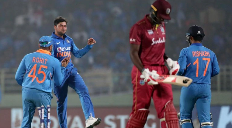ବିଶାଖାପାଟଣା,୧୮।୧୨ (ପି.ଟି.)- ପ୍ରଥମ ଦିନିକିଆର ପରାଜୟ ପରେ ଘରୋଇ ଭାରତ ଦୃଢ ପ୍ରତ୍ୟାବର୍ତ୍ତନ କରିଛି। ବ୍ୟାଟିଂ ଓ ବୋଲିଂରେ ଦମ୍ଦାର ପ୍ରଦର୍ଶନ କରି ଭାରତ ସ୍ଥାନୀୟ ୟାଇଏସ୍ଆର କ୍ରିକେଟ ଷ୍ଟାଡିୟମରେ ବୁଧବାର ଅନୁଷ୍ଠିତ ଦ୍ୱିତୀୟ ଦିନିକିଆ ମ୍ୟାଚ୍ରେ ଭ୍ରମଣକାରୀ ଓ୍ବେଷ୍ଟଇଣ୍ଡିଜକୁ ୧୦୭ ରନରେ ପରାସ୍ତ କରିଛି। ଏଥିସହିତ ୩ ମ୍ୟାଚ୍ ବିଶିଷ୍ଟ ଏହି ସିରିଜ ୧-୧ ସମାନସ୍ତରରେ ପହଞ୍ଚିଛି। ଶତକ ହାସଲ କରିଥିବା ଦୁଇ ଓପନର ରୋହିତ ଶର୍ମା ଓ ଲୋକେଶ ରାହୁଲ ଦ୍ୱିଶତକୀୟ ଭାଗୀଦାରି ସ୍ଥାପନ କରି ଭାରତକୁ ବୃହତ୍ ସ୍କୋର ପ୍ରଦାନ କରିଥିଲେ। ବୋଲିଂରେ ରିଷ୍ଟ ସ୍ପିନର କୂଲଦୀପ ଯାଦବ ହ୍ୟାଟ୍ରିକ ଉଇକେଟ ନେଇ ଓ୍ବେଷ୍ଟଇଣ୍ଡିଜର ବିପର୍ଯ୍ୟୟ ଘଟାଇଥିଲେ ଓ ଭାରତର ବିଜୟକୁ ସହଜ କରାଇଥିଲେ। ଟସ୍ ଜିତି ଓ୍ବେଷ୍ଟଇଣ୍ଡିଜ ଫିଲ୍ଡିଂ ନିଷ୍ପତ୍ତି ନେଇଥିଲା। ପ୍ରଥମେ ବ୍ୟାଟିଂ କରି ଭାରତ ନିର୍ଦ୍ଧାରିତ ୫୦ ଓଭରରେ ୫ ଉଇକେଟ ହରାଇ ୩୮୭ ରନ ସଂଗ୍ରହ କରିଥିଲା। ଜବାବରେ ଓ୍ବେଷ୍ଟଇଣ୍ଡିଜ ୪୩.୩ ଓଭରରେ ୨୮୦ ରନ କରି ଅଲଆଉଟ ହେବା ସହ ପରାସ୍ତ ହୋଇଥିଲା।