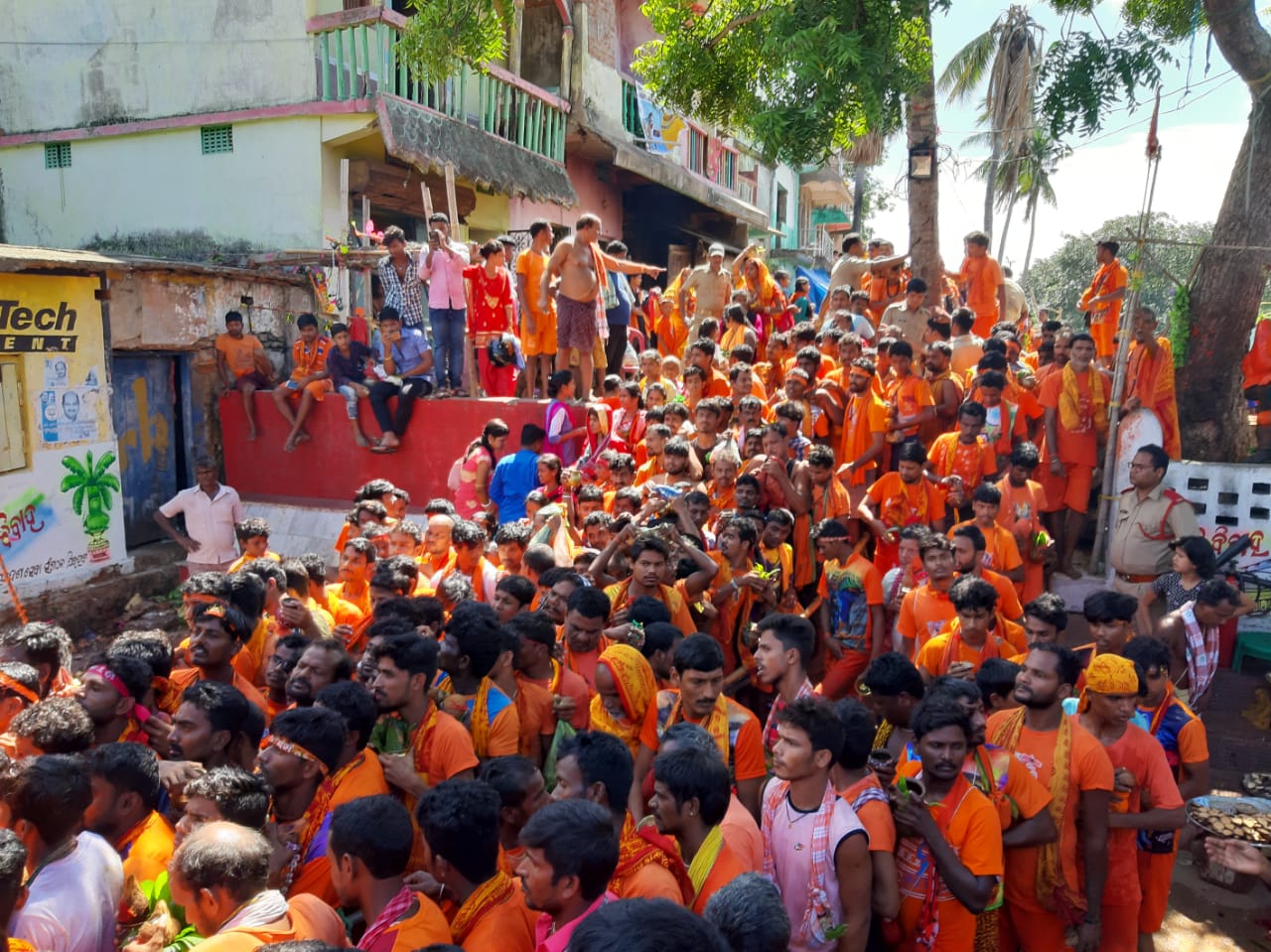 ଆରଡ଼ି,୨୯।୭(ଡି.ଏନ୍.ଏ.): ଭଦ୍ରକ ଜିଲା ଆରଡ଼ିର ପ୍ରସିଦ୍ଧ ବାବା ଆଖଣ୍ଡଳମଣିଙ୍କଠାରେ ଶ୍ରାବଣ ମାସର ୨ୟ ସୋମବାରରେ ଲକ୍ଷାଧିକ କାଉଡ଼ିଆ ଜଳଲାଗି କରିଥିବା ଜଣାପଡ଼ିଛି। ସୀମିତ ସ୍ଥାନରେ ଏତେ ସଂଖ୍ୟକ କାଉଡ଼ିଆଙ୍କ ଉପସ୍ଥିତି ଜିଲା ପ୍ରଶାସନ, ପୋଲିସ ତଥା ମନ୍ଦିର ପ୍ରଶାସନର ମୁଣ୍ଡବ୍ୟଥାର କାରଣ ହୋଇଥିଲା । ଭିଡ଼ ନିୟନ୍ତ୍ରଣ ପାଇଁ ପୋଲିସ ପକ୍ଷରୁ ବ୍ୟାପକ ବ୍ୟବସ୍ଥା କରାଯାଇଥିଲା। ଭିଡ଼କୁ ଲକ୍ଷ୍ୟ କରି ରବିବାର ଅପରାହ୍ନ ୪ଟାରୁ କାଉଡ଼ିିଆମାନେ ଶ୍ରାବଣୀ ମହାଦେବଙ୍କ ମସ୍ତକରେ ଜଳଲାଗି କରିଥିଲେ । ପ୍ରାୟ ୭୦୦ ମିଟର ଦୂରରୁ କାଉଡ଼ିିଆମାନେ ଲମ୍ବା ଲାଇନ୍ରେ ଆସି ପାଣି ଢାଳିଥିଲେ । କେତେକ କାଉଡ଼ିଆ ଶୃଙ୍ଖଳା ରକ୍ଷା ନ କରି ବ୍ୟାରିକେଟ୍ ଭାଙ୍ଗିଥିବା ଦେଖିବାକୁ ମିଳିଥିଲା। ରବିବାର ରାତି ୩ଟା ଏବଂ ସୋମବାର ପୂର୍ବାହ୍ନରେ କେତେକ କାଉଡ଼ିଆ ଅପ୍ରୀତିକର ପରିସ୍ଥିତି ସୃଷ୍ଟି କରିଥିଲେ। ସୋମବାର ଅପରାହ୍ନ ପର୍ଯ୍ୟନ୍ତ ଏହି ଜଳଲାଗି ପ୍ରକ୍ରିୟା ଚାଲୁ ରହିବାର ସମ୍ଭାବନା ଥିବା ମନ୍ଦିର ପ୍ରଶାସନ ପକ୍ଷରୁ ସୂଚନା ମିଳିଛି।