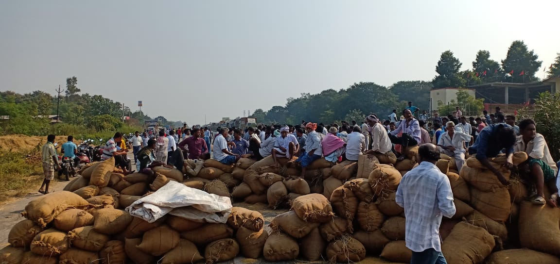 ଧାନ କିଣାବିକାରେ ଟୋକନ ବ୍ୟବସ୍ଥାକୁ ବିରୋଧ: ରାଜପଥ ଉପରେ ଧାନ ଗଦା କଲେ ଚାଷୀ