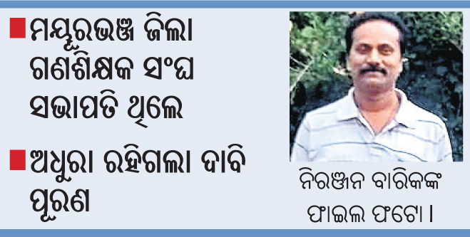 ଓଟିଇଟି ପରୀକ୍ଷାର ପୁନଃ ମୂଲ୍ୟାୟନ, ବାଦ୍ପଡ଼ିଥିବା ଗଣଶିକ୍ଷକଙ୍କୁ ନିୟମିତ କରିବା, ମୃତ ଶିକ୍ଷକଙ୍କ ପରିବାରକୁ ଚାକିରି ସହିତ ମୃତ୍ୟୁକାଳୀନ ସହାୟତା ଆଦି ଦାବିରେ ରାଜ୍ୟ ପ୍ରାଥମିକ ଶିକ୍ଷକ (ଏକ୍ସକ୍ୟାଡର) ମହାସଂଘ ପକ୍ଷରୁ ଲୋୟର ପିଏମ୍ଜିରେ ଧାରଣା ଚାଲିଛି। ଶିକ୍ଷକ ନିରଞ୍ଜନଙ୍କ ମୃତ୍ୟୁରେ ଅନ୍ୟମାନେ ଦୁଃଖ ପ୍ରକାଶ କରିଛନ୍ତି। ସେମାନେ କହିଛନ୍ତି ଯେ, ଦାବି ପୂରଣ ନ ହେଲେ ନିରଞ୍ଜନଙ୍କ ଭଳି ଆମେ ସମସ୍ତେ ଜୀବନ ହାରିଦେବୁ। ୨୦୧୪ରୁ ସଂଘ ନିଜର ଦାବି ନେଇ ଆନ୍ଦୋଳନ ଜାରି ରଖିଛି। ସରକାର ଭୁଆଁ ବୁଲାଇ ଚାଲିଛନ୍ତି। ପୂର୍ବରୁ ମଧ୍ୟ ସଂଘ ସଦସ୍ୟ ଥିବା ଜଣେ ଶିକ୍ଷକ ଦାବି ପୂରଣ ନ ହେବାରୁ ଆତ୍ମହତ୍ୟା କରିଛନ୍ତି।