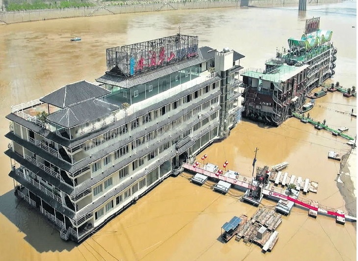 ଚାଇନାର ୟାଙ୍ଗ୍ଜି ନଦୀରେ ୫ମହଲା ବିଶିଷ୍ଟ ହୋଟେଲ ଭାସୁଥିବାର ଭିଡିଓ ଏବେ ସୋସିଆଲ ମିଡିଆରେ ଭାଇରାଲ ହେବାରେ ଲାଗିଛି। ଏହାକୁ ଦେଖିଲେ ଲାଗିବ ଯେମିତି ବଢ଼ିପାଣିରେ ହୋଟେଲଟି ଭାସି ଯାଉଛି। କିନ୍ତୁ ଭିଡିଓ ଭାଇରାଲ ହେବା ପରେ ଲୋକଙ୍କ ବିଶ୍ୱାସ ହେଲା ଏହାକୁ ବିଧିବଦ୍ଧ ହଟାଇ ଦିଆଯାଇଛି। ଟୋଇଂ ବୋଟ୍ ସହାୟତାରେ ଏହି ଭାସମାନ ହୋଟେଲକୁ ଗୋଟିଏ କିଲୋମିଟର ନଦୀ ମଧ୍ୟକୁ ସ୍ଥାନାନ୍ତର କରାଯାଇଛି। କାରଣ ହୋଟେଲଟି ଯେଉଁଠି ଥିଲା ସେଠାରେ ବହୁତ କମ୍ ପାଣି ରହିଥିଲା। ଏଥିପାଇଁ ନଦୀ ମଧ୍ୟରେ ହୋଟେଲକୁ ରଖାଯାଇଛି। ଭିଡିଓ ଭାଇରାଲ ହେବା ପରେ ଜଣେ ୟୁଜର ଲେଖିଥିଲେ ଏହା କେବଳ ଚାଇନାରେ ସମ୍ଭବ ହୋଇଥାଏ। ହୋଟେଲ ଅଧିକାରୀଙ୍କ କହିବାନୁଯାୟୀ, କମ୍ ପାଣି ଯୋଗୁ ହୋଟେଲକୁ ଅନ୍ୟ ଜାଗାକୁ ସ୍ଥାନାନ୍ତର ପାଇଁ ଜରୁରୀ ପଡ଼ିଲା।