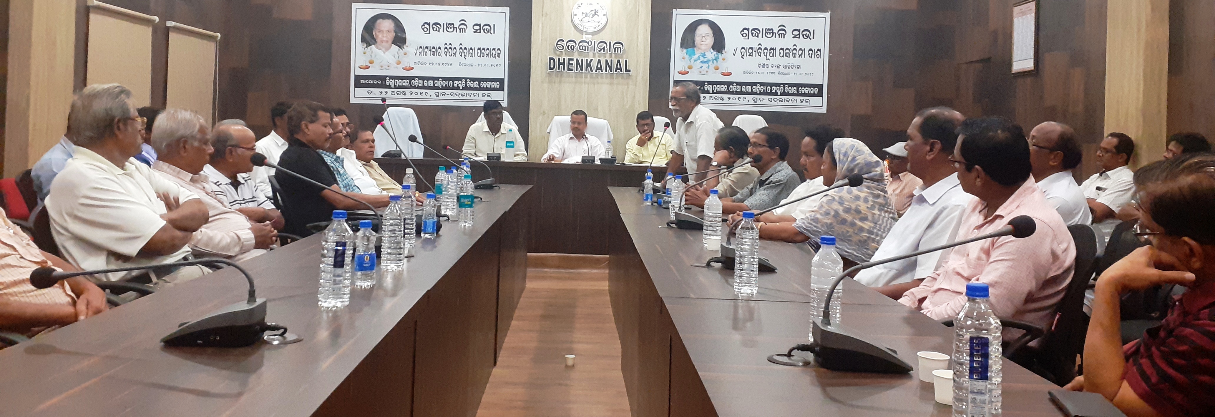 ଢେଙ୍କାନାଳ ଅଫିସ, ୨୩।୮-ଢେଙ୍କାନାଳ ଜିଲା ପ୍ରଶାସନ, ଓଡ଼ିଆ ଭାଷା, ସାହିତ୍ୟ ଓ ସଂସ୍କୃତି ବିଭାଗର ମିଳିତ ଆନୁକୂଲ୍ୟରେ ଗୁରୁବାର ବିଶିଷ୍ଟ କବୟିତ୍ରୀ ‘ହାସ୍ୟବିଦ୍ୟୁଷୀ’ ପଙ୍କଜିନୀ ଦାଶ ଏବଂ ନାଟ୍ୟକାର ବିପିନ ବିହାରୀ ପଟ୍ଟନାୟକଙ୍କୁ ଭାବବିହ୍ବଳ ଶ୍ରଦ୍ଧାଞ୍ଜଳି ଜ୍ଞାପନ କରାଯାଇଛି। ଜିଲା କାର୍ଯ୍ୟାଳୟ ସଦ୍ଭାବନା ଗୃହରେ ଆୟୋଜିତ ସ୍ମୃତିସଭାରେ ଜିଲାପାଳ ଭୂମେଶ ଚନ୍ଦ୍ର ବେହେରା ଅଧ୍ୟକ୍ଷତା କରି କହିଲେ, ପଙ୍କଜିନୀ ଏବଂ ବିପିନଙ୍କ ଶୂନ୍ୟତା ସବୁବେଳେ ଜିଲାବାସୀ ଅନୁଭବ କରିବେ। ଉଭୟେ ଉତ୍ତରପିଢ଼ିଙ୍କ ପାଇଁ ସର୍ବଦା ଆଦର୍ଶ ହୋଇରହିବ। ସେମାନଙ୍କ କୃତୀଗୁଡ଼ିକୁ ସାଉଁଟି ରଖିପାରିଲେ ଏହା ହିଁ ହେବ ସେମାନଙ୍କ ପାଇଁ ପ୍ରକୃତ ଶ୍ରଦ୍ଧାଞ୍ଜଳି।