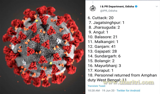 ଭୁବନେଶ୍ୱର, ୧୬।୬(ବ୍ୟୁରୋ): ରାଜ୍ୟରେ ଶୁକ୍ରବାର ୧୬୫ ନୂଆ କରୋନା ପଜିଟିଭ ଚିହ୍ନଟ ହୋଇଛନ୍ତି। ଏମାନଙ୍କ ମଧ୍ୟରେ ପଶ୍ଚିମବଙ୍ଗରୁ ବାତ୍ୟା ‘ଅମ୍ଫନ’ ମୁକାବିଲା ସାରି ଫେରିଥିବା ୧୧ ପୁନରୁଦ୍ଧାରକାରୀ ରହିଛନ୍ତି। ଏ ନେଇ ସୂଚନା ଓ ଲୋକ ସମ୍ପର୍କ ବିଭାଗ ପକ୍ଷରୁ ସୂଚନା ମିଳିଛି। ନୂଆ ଆକ୍ରାନ୍ତଙ୍କ ମଧ୍ୟରୁ କ୍ୱାରାଣ୍ଟାଇନ ସେଣ୍ଟରରୁ ୧୪୦ ଜଣ ଚିହ୍ନଟ ହୋଇଥିବା ବେଳେ ୨୫ଜଣ ସ୍ଥାନୀୟ ଅଞ୍ଚଳରୁ ସଂକ୍ରମିତ ହୋଇଛନ୍ତି।