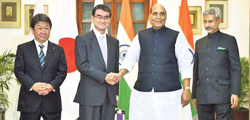 ଭାରତ ଗସ୍ତରେ ଆସିଥିବା ଜାପାନର ପ୍ରତିରକ୍ଷା ମନ୍ତ୍ରୀ ଟାରୋ କୋନୋ ଓ ବହିର୍ବ୍ୟାପାର ମନ୍ତ୍ରୀ ଟୋସିମିସୁ ମୋଟେଗିଙ୍କ ସହ ନୂଆଦିଲ୍ଲୀସ୍ଥିତ ହାଇଦ୍ରାବାଦ ହାଉସ୍ରେ ଭାରତୀୟ ପ୍ରତିପକ୍ଷ ରାଜନାଥ ସିଂ ଏବଂ ଏସ୍. ଜୟଶଙ୍କର ଆତଙ୍କବାଦ ବିରୋଧୀ କାର୍ଯ୍ୟାନୁଷ୍ଠାନ ପାଇଁ ଗୋଇନ୍ଦା ତଥ୍ୟ ବିନମୟ ସମେତ ବିଭିନ୍ନ ପ୍ରସଙ୍ଗରେ ଆଲୋଚନା କରିଥିଲେ। ଡିସେମ୍ବରରେ ଜାପାନ ପ୍ରଧାନମନ୍ତ୍ରୀ ଶିଞ୍ଜୋ ଆବେ ଭାରତ ଗସ୍ତରେ ଆସିବା ପୂର୍ବରୁ ଦୁଇ ଦେଶ ମଧ୍ୟରେ ମିଳିତ ଆଲୋଚନା ଅନୁଷ୍ଠିତ ହୋଇଛି।
