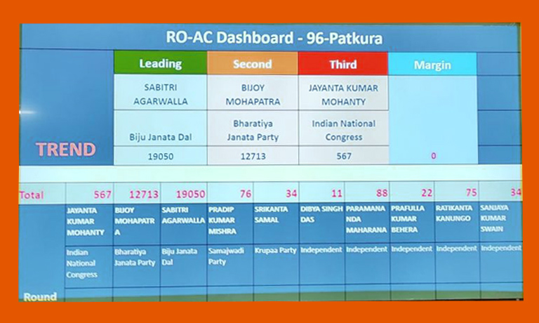 କେନ୍ଦ୍ରାପଡ଼ା ଅଫିସ, ୨୪।୭: ପାଟକୁରା ବିଧାନସଭା ଆସନ ପାଇଁ ସକାଳ ୮ଟାରୁ ଭୋଟ ଗଣତି ଆରମ୍ଭ ହୋଇଛି। ପୂର୍ବାହ୍ନ ସାଢ଼େ ୯ଟା ସୁଦ୍ଧା ତୃତୀୟ ରାଉଣ୍ଡ ଭୋଟ ଗଣତି ଶେଷ ହୋଇଛି। ତୃତୀୟ ରାଉଣ୍ଡ ସୁଦ୍ଧା ବିଜେଡି ୬୩୩୭ ଖଣ୍ଡ ଭୋଟରେ ଆଗୁଆ ଅଛି। ଏହି ରାଉଣ୍ଡରେ ବିଜେଡି ପ୍ରାର୍ଥୀ ସାବିତ୍ରୀ ଅଗ୍ରଓ୍ବାଲଙ୍କୁ ୧୯୦୫୦ ଭୋଟ ମିଳିଛି। ଭାଜପା ପ୍ରାର୍ଥୀ ବିଜୟ ମହାପାତ୍ରଙ୍କୁ ୧୨,୭୧୩ ଖଣ୍ଡ ଭୋଟ ମିଳିଥିବା ବେଳେ କଂଗ୍ରେସ ପ୍ରାର୍ଥୀ ଜୟନ୍ତ କୁମାର ମହାନ୍ତି ୫୭୬ ଖଣ୍ଡ ଭୋଟ ପାଇଥିବା ଜଣାପଡ଼ିଛି।