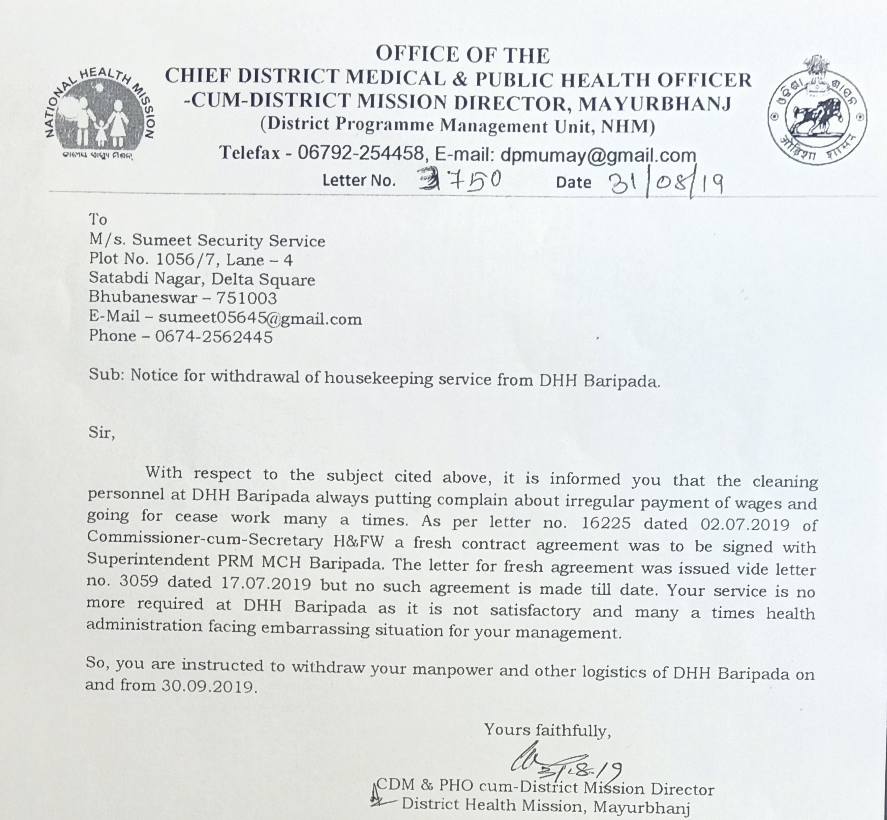 ବାରିପଦା ଅଫିସ,୧୪।୯- ବଣପାହାଡ଼ ଘେରା ତଥା ଆଦିବାସୀ ଅଧ୍ୟୁଷିିତ ମୟୂରଭଞ୍ଜ ଜିଲାର ଅପହଞ୍ଚ ଇଲାକାର ଲୋକଙ୍କୁ ସ୍ବାସ୍ଥ୍ୟସେବା ଯୋଗାଇବା ପାଇଁ ରାଜ୍ୟ ସରକାର କେନ୍ଦ୍ରୀୟ ଅନୁଦାନରେ ବାରିପଦା ରଙ୍ଗାମାଟିଆଠାରେ ମେଡିକାଲ କଲେଜ ପ୍ରତିଷ୍ଠା କରାଇଥିଲେ। ଜିଲା ମୁଖ୍ୟ ଚିକିତ୍ସାଳୟକୁ ଉନ୍ନୀତ କରାଯାଇ ମେଡିକାଲ କଲେଜସ୍ତରୀୟ ସ୍ବାସ୍ଥ୍ୟସେବା ପ୍ରଦାନ କରାଯାଉଛି। ପଡ଼ୋଶୀ ରାଜ୍ୟ ଝାଡ଼ଖଣ୍ଡ ଓ ପଶ୍ଚିମବଙ୍ଗର ସୀମାରେ ଏହି ମେଡିକାଲ ଥିବାରୁ ପ୍ରତିଦିନ ଉକ୍ତ ଦୁଇ ରାଜ୍ୟର ରୋଗୀମାନେ ମଧ୍ୟ ଏଠାକୁ ଉନ୍ନତ ସ୍ବାସ୍ଥ୍ୟସେବା ପାଇଁ ଆସିଥାନ୍ତି। ସେହିପରି ପଡୋଶୀ ଜିଲାର ଲୋକେ ମଧ୍ୟ ଏହା ଉପରେ ଭରସା କରି ଆସିଥାନ୍ତି। ତେବେ ବିଭିନ୍ନ ସମୟରେ କର୍ତ୍ତୃୃପକ୍ଷଙ୍କ ଖାମଖିଆଲି ମନୋଭାବ ଯୋଗୁ ଚିକିତ୍ସାଳୟ ବହୁ ଅବ୍ୟବସ୍ଥାରେ ଗତି କରୁଛି। ବିଶେଷ କରି ଚିକିତ୍ସାଳୟରେ ସଫେଇ କାର୍ଯ୍ୟ କ୍ଷେତ୍ରରେ ଅନିୟମିତତା ଦେଖାଯାଉଛି। ଜିଲାର ବହୁ ସାମାଜିକ ସଂଗଠନ ଏ ନେଇ ଅଭିଯୋଗ ତଥା ଧାରଣା ଓ ବିକ୍ଷୋଭ ପ୍ରଦର୍ଶନ କରୁଥିଲେ ମଧ୍ୟ ଚିକିତ୍ସାଳୟ କର୍ତ୍ତୃପକ୍ଷଙ୍କ ଚେତା ପଶୁୁନାହିଁ। ମେଡିକାଲ କର୍ତ୍ତୃପକ୍ଷ ତଥା ଚିଫ୍ ଡିଷ୍ଟ୍ରିକ୍ଟ ମେଡିକାଲ ଆଣ୍ଡ ପବ୍ଲିକ ହେଲ୍ଥ ଅଫିସର ସଫେଇ ଦାୟିତ୍ୱରେ ଥିବା ଏମ/ଏସ ସୁମିତ ସିକ୍ୟୁରିଟି ସର୍ଭିସକୁ ପତ୍ର ସଂଖ୍ୟା-୩୦୬୩ ,ତା୧୭ା୭ା୨୦୧୯ରେ କାରଣ ଦର୍ଶାଅ ନୋଟିସ ଜାରି କରି ଚୁପ ହୋଇ ବସିଥିଲେ। ଏ ନେଇ ‘ଧରିତ୍ରୀ’ରେ ଗତ ଅଗଷ୍ଟ ୧୫ ତାରିଖରେ ଏକ ତଥ୍ୟ ଓ ମତାମତ ଭିତ୍ତିକ ରିପୋର୍ଟ ପ୍ରକାଶ ପାଇଥିଲା। ପରେ ଏହି ଘଟଣାର ସ୍ଥାୟୀ ସମାଧାନ ଦିଗରେ ମେଡିକାଲ କର୍ତ୍ତୃପକ୍ଷ ପଦକ୍ଷେପ ନେଇଛନ୍ତି। ଏହି ସଂସ୍ଥାକୁ ଜିଲା ମୁଖ୍ୟ ଚିକିତ୍ସାଳୟର ସଫେଇ ଦାୟିତ୍ୱରୁ ହଟାଇ ଦିଆଯାଇଛି। ଏ ନେଇ ଜାତୀୟ ସ୍ବାସ୍ଥ୍ୟ ମିଶନର ଜିଲା ପ୍ରୋଗ୍ରାମ ମ୍ୟାନେଜର ଅନିଲ କୁମାର ମହାନ୍ତି ସୂଚନା ଦେଇଛନ୍ତିି। ଏହି ସଂସ୍ଥାକୁ ମେଡିକାଲ କର୍ତ୍ତୃପକ୍ଷ ତୁରନ୍ତ କଳା ତାଲିକାଭୁକ୍ତ କରିବାକୁ ନିଷ୍ପତ୍ତି ନେଇଥିବା ମଧ୍ୟ ସେ କହିଛନ୍ତି। ଉଲ୍ଲେଖଯୋଗ୍ୟ ଯେ, ଏହି ସଂସ୍ଥା ୩ ବର୍ଷ ପାଇଁ ମେଡିକାଲ କଲେଜ ସହିତ ରାଇରଙ୍ଗପୁର, କରଞ୍ଜିଆ ଓ ଉଦଳା ଉପଖଣ୍ଡ ଚିକିତ୍ସାଳୟ ଏବଂ ଜିଲାରେ ଥିବା ୨୬ ଟି ଗୋଷ୍ଠୀ ସ୍ବାସ୍ଥ୍ୟକେନ୍ଦ୍ରର ଦାୟିତ୍ୱ ମଧ୍ୟ ନେଇଛି। ତେବେ ରାଇରଙ୍ଗପୁର, କରଞ୍ଜିଆ ଓ ଉଦଳା ଉପଖଣ୍ଡ ଚିକିତ୍ସାଳୟରେ ମଧ୍ୟ ଆବଶ୍ୟକ ମୁତାବକ ସଫେଇ କର୍ମଚାରୀ ନ ଥିବାରୁ ସଫେଇ କାର୍ଯ୍ୟ ଠିକ ହେଉନାହିଁ। ମେଡିକାଲ ସଫେଇରେ ଏହି ସଂସ୍ଥା ବିଫଳ ହୋଇଥିବା ବେଳେ ସଫେଇ କର୍ମଚାରୀମାନଙ୍କୁ ବିଭିନ୍ନ ଉପକରଣ ତଥା ୟୁନିଫର୍ମ, ଆଇଡି କାର୍ଡ, ମାସ୍କ, ଗ୍ଲୋଭ୍ସ, ଯୋତା ଆଦି ପ୍ରଦାନ କରି ନ ଥିବା ଅଭିଯୋଗ ହୋଇ ଆସୁଥିଲା।