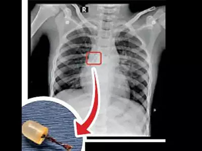 ଫରିଦାବାଦ୍,୭।୨: ହରିୟାଣାର ଫରିଦାବାଦରେ ଏକ ଅଭାବନୀୟ ଘଟଣା ଘଟିଛି। ଜଣେ ୧୦ ବର୍ଷୀୟ ବାଳକଙ୍କ ପେଟରୁ ଏଲ୍ଇଡି ବଲ୍ ବାହାର କରାଯାଇଛି। ଫରିଦାବାଦର ସେକ୍ଟର ୬୨ରେ ରହୁଥିବା ପ୍ରମୋଦ କୁମାରଙ୍କ ଭଣଜା ଅଭିଷେକ(୧୦) ୧୦ ଦିନ ପୂର୍ବେ ଖେଳୁଥିବାବେଳେ ପ୍ରବଳ କାଶ ହୋଇଥିଲା। ଏହାପରେ ଛାତିରେ ଯନ୍ତ୍ରଣା ମଧ୍ୟ ହୋଇଥିଲା। ତାଙ୍କୁ ପରିବାର ଲୋକେ କାଶ ଔଷଧ ଆଣି ଦେଇଥିଲେ। କିନ୍ତୁ କାଶ ଏବଂ ଛାତି ଯନ୍ତ୍ରଣା କମି ନ ଥିଲା। ତାଙ୍କୁ ହସ୍ପିଟାଲ ନିଆଯାଇଥିଲା। ପରୀକ୍ଷା ପରେ ତାଙ୍କ ଶ୍ୱାସନଳୀରେ କୌଣସି ଏକ ଜିନିଷ ଅଟକି ଯାଇଥିବା ଡାକ୍ତରମାନେ କହିଥିଲେ। ଅଭିଷେକଙ୍କ ବୟସ କମ୍ ହୋଇଥିବାରୁ ପେଟରେ ଅପରେଶନ କରାଯିବା ନିରାପଦ ନୁହେଁ ଭାବି ଡାକ୍ତରମାନେ ଆଧୁନିକ ଉପାୟରେ ଶ୍ୱାସନଳୀରେ ଅଟକି ଯାଇଥିବା ଜିନିଷଟିକୁ ବାହାର କରିଥିଲେ। ପରେ ଜଣାପଡିଥିଲା ଉକ୍ତ ଜିନିଷଟି ଖେଳନାରେ ବ୍ୟବହୃତ ହେଉଥିବା ଏଲ୍ଇଡି ବଲ୍ବ। ଖେଳୁଥିବାବେଳେ ଅଭିଷେକ ତାକୁ ଗିଳିଦେଇଥିବା କୁହାଯାଉଛି।