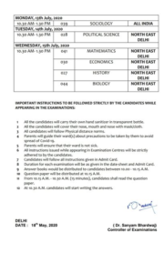 ନୂଆଦିଲ୍ଲୀ,୧୮।୫: କରୋନା ସଂକ୍ରମଣ ଯୋଗୁ ଦେଶରେ ଲକ୍ଡାଉନ୍ ଜାରି ହେବାରୁ ସିବିଏସ୍ଇ ବୋର୍ଡର ଦଶମ ଏବଂ ଦ୍ୱାଦଶ ପରୀକ୍ଷା ଅଧାରେ ଅଟକି ରହିଥିଲା। ଅବଶିଷ୍ଟ ପରୀକ୍ଷାଗୁଡ଼ିକ ପାଇଁ ସୂଚୀ ତାଲିକା ସୋମବାର ପ୍ରକାଶ ପାଇଛି। ସିବିଏସ୍ଇ ଦଶମ ଏବଂ ଦ୍ୱାଦଶ ବୋର୍ଡ ପରୀକ୍ଷା ଜୁଲାଇ ୧ରୁ ଆରମ୍ଭ ହୋଇ ଜୁଲାଇ ୧୫ରେ ଶେଷ ହେବ। ଏନେଇ ସିବିଏସ୍ଇ ବୋର୍ଡ ପକ୍ଷରୁ କୁହାଯାଇଛି ଯେ, ଦଶମ ପରୀକ୍ଷା କେବଳ ନର୍ଥ-ଇଷ୍ଟ୍ ଦିଲ୍ଲୀରେ ହେବ। ଅପରପକ୍ଷରେ ଦ୍ୱାଦଶ ଶ୍ରେଣୀର ଅଟକି ରହିଥିବା ଅବଶିଷ୍ଟ ବିଷୟଗୁଡ଼ିକର ପରୀକ୍ଷା ଦେଶବ୍ୟାପୀ କରାଯିବ। ଦ୍ୱାଦଶ ଶ୍ରେଣୀ ପରୀକ୍ଷା ଜୁଲାଇ ୧,୨,୩, ୪, ୬, ୭, ୮,୯ ,୧୦, ୧୧, ୧୩, ୧୪ ଏବଂ ୧୫ ତାରିଖରେ ଅନୁଷ୍ଠିତ ହେବ। ସେହିପରି ଦଶମ ଶ୍ରେଣୀ ପରୀକ୍ଷା ଜୁଲାଇ ୧, ୨ , ୧୦ ଏବଂ ୧୫ ତାରିଖରେ ହେବ। ପରୀକ୍ଷା ଦେଉଥିବା ଛାତ୍ରୀଛାତ୍ର ମାସ୍କ୍ ପିନ୍ଧି ସାନିଟାଇଜର ସହିତ ପରୀକ୍ଷା କେନ୍ଦ୍ରକୁ ଆସିବା ପାଇଁ ସିବିଏସ୍ଇ ବୋର୍ଡ ପକ୍ଷରୁ କୁହାଯାଇଛି।