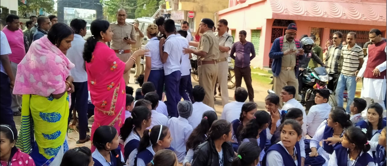 ଜଳେଶ୍ୱର, ୧।୨(ଡି.ଏନ.ଏ.)-ଜଳେଶ୍ୱର ଟାଉନ ହାଇସ୍କୁଲର ପ୍ରଧାନ ଶିକ୍ଷକଙ୍କ ନିଲମ୍ବନ ଆଦେଶ ବାତିଲ ଦାବିରେ ପରିଚାଳନା କମିଟି ଓ ଅଭିଭାବକମାନେ ଆଜକୁ ୪ ଦିନ ଧରି ବିଦ୍ୟାଳୟ ସମ୍ମୁଖରେ ଧାରଣା ଚାଲୁ ରହିଛି। ଶୁକ୍ରବାର ପୂର୍ବାହ୍ନ ୧୦ଟାରେ ଜଳେଶ୍ୱର ବିଇଓ ବିଜୟ ନାଥ ବିଦ୍ୟାଳୟକୁ ଆସିଥିବା ବେଳେ ଅଭିଭାବକମାନେ ତାଙ୍କୁ ଅଟକାଇ ଦାବି ସମ୍ପର୍କରେ କ’ଣ ପଦକ୍ଷେପ ନିଆଯାଇଛି ପ୍ରଶ୍ନ କରିଥିଲେ। ଧାରଣା ଚାଲିଥିବା ବେଳେ ହଠାତ୍ ମଧ୍ୟାହ୍ନ ୧୨ଟାରେ ଆନ୍ଦୋଳନକାରୀମାନେ ଧାରଣାରୁ ଉଠିଯାଇ ରାସ୍ତାରୋକୋ କରିଥିଲେ। ଫଳରେ ଉଭୟ ପଟରୁ ଯାନବାହନ ଚଳାଚଳ ବାଧାପ୍ରାପ୍ତ ହୋଇଥିଲା। ଘଟଣାସ୍ଥଳରେ ଜଳେଶ୍ୱର ଆଇଆଇସି ଧନେଶ୍ୱର ସାହୁ ପୋଲିସ ବାହିନୀ ସହ ପହଞ୍ଚତ୍ଥିଲେ। ରାସ୍ତାରୋକୋରେ ଯୋଗ ଦେଇଥିବା ଛାତ୍ରୀଛାତ୍ରମାନଙ୍କୁ ପୋଲିସ ବୁଝାଶୁଝା କରିବା ପରେ ରାସ୍ତାରୋକୋ ହଟିଥିଲା।