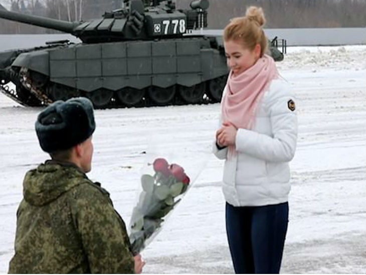 ମସ୍କୋ: ଋଷିୟାନ୍ ସେନାର ଜଣେ ଯବାନ ନିଜର ଗାର୍ଲଫ୍ରେଣ୍ଡଙ୍କୁ ମନାଇବା ପାଇଁ ଏମିତି କିଛି କରିଛନ୍ତି, ଯାହା ଜାଣିଲେ ଆଶ୍ଚର୍ଯ୍ୟ ହେବେ। ବାରମ୍ବାର ମନାଇବା ପାଇଁ ଚେଷ୍ଟା କରି ବିଫଳ ହେବା ପରେ ଶେଷରେ ଏମିତି କିଛି ପ୍ଲାନିଂ କଲେ ଯେଉଁଥିରେ ପ୍ରେମିକା ତାଙ୍କ ପ୍ରେମକୁ ଗ୍ରହଣ କରିନେବାକୁ ଏକପ୍ରକାର ବାଧ୍ୟ ହୋଇଛନ୍ତି। ଋଷିୟାନ ସେନାର ପ୍ଲାଟୁନ୍ କମାଣ୍ଡର ଡେନିସ୍ କଞ୍ଜେଟସେବ୍ ୧୬ଟି ଟ୍ୟାଙ୍କରରେ ହାର୍ଟ ସେପ୍ କରି ତାଙ୍କ ପ୍ରେମିକାଙ୍କ ନିକଟରେ ପ୍ରେମ ଜାହିର କରିଛନ୍ତି। ଖାସ୍କରି ପ୍ରେମିକାଙ୍କୁ ମନାଇବା ପାଇଁ ଡେନିସ୍ ଏପରି ଭିନ୍ନ ତରିକା ଆପଣାଇଛନ୍ତି।