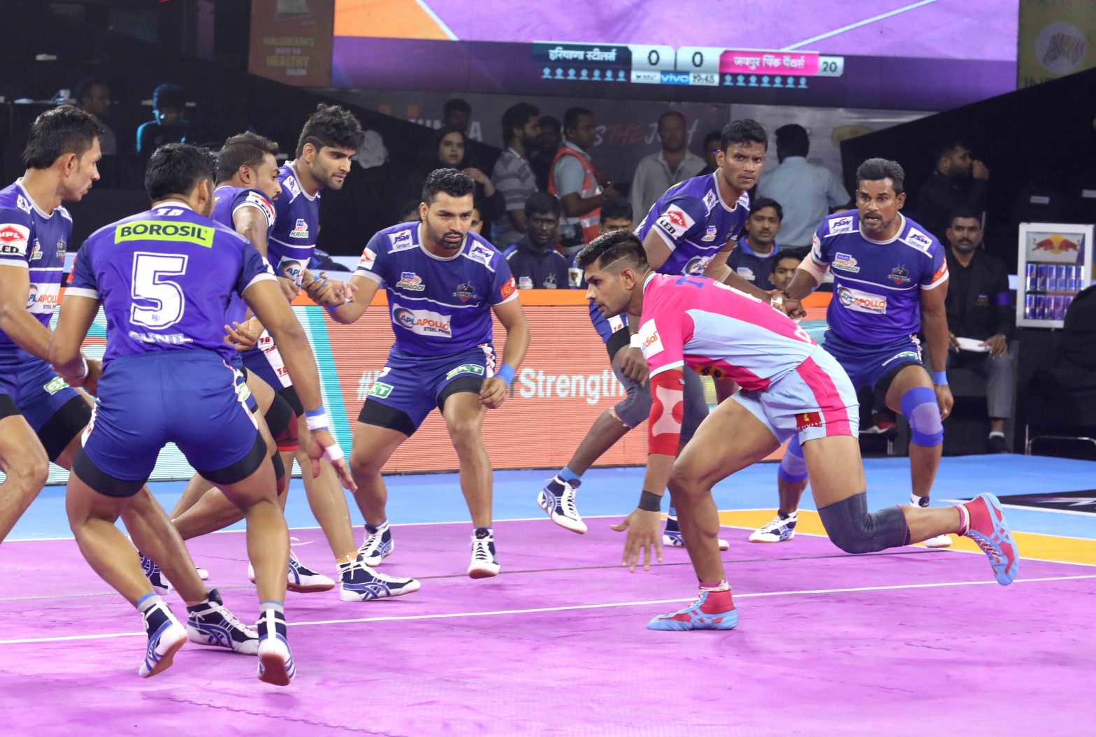 ମୁମ୍ବାଇ, ୧।୮(ପି.ଟି.)- ଅଧିନାୟକ ଦୀପକ ହୁଦାଙ୍କ ଚମତ୍କାର ପ୍ରଦର୍ଶନ ବଳରେ ଜୟପୁର ପିଙ୍କ୍ ପାନ୍ଥର୍ସ ଚଳିତ ପ୍ରୋ କବାଡ଼ି ଲିଗ୍ରେ ବିଜୟ ଅଭିଯାନ ଜାରି ରଖିଛି। ବୁଧବାର ଅନୁଷ୍ଠିତ ମ୍ୟାଚରେ ଏହି ଦଳ ହରିୟାଣା ଷ୍ଟିଲର୍ସକୁ ୩୭-୨୧ ପଏଣ୍ଟରେ ପରାସ୍ତ କରିଛି। ଚଳିତ ଲିଗ୍ରେ ଜୟପୁର ଦଳର ୩ ମ୍ୟାଚରୁ ଏହା ୩ୟ ବିଜୟ। ଦ୍ୱିତୀୟାର୍ଦ୍ଧରେ ପ୍ରତିପକ୍ଷ ଦଳକୁ ୨ ଥର ଅଲ୍-ଆଉଟ କରି ପାନ୍ଥର୍ସ ମ୍ୟାଚକୁ ନିଜ ନିୟନ୍ତ୍ରଣକୁ ନେଇ ଆସିଥିଲା। ତାରକା ପ୍ରଦର୍ଶନକାରୀଭାବେ ହୁଦା ସର୍ବାଧିକ ୧୪ ପଏଣ୍ଟ ହାସଲ କରିଥିଲେ। ସନ୍ଦିପ ଧୁଲ ୬ ଓ ବିଶାଲ ୪ ପଏଣ୍ଟ ସଂଗ୍ରହ କରିଥିଲେ।