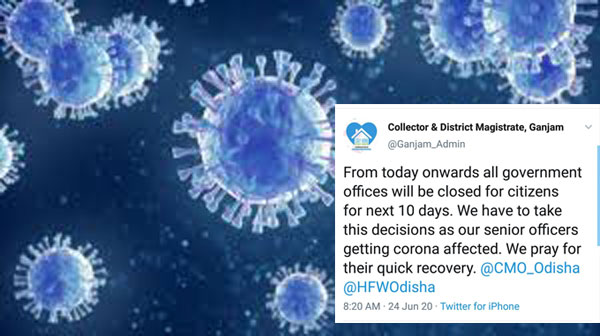 ଗଞ୍ଜାମ ଅଫିସ, ୨୪।୬: ଗଞ୍ଜାମରେ ଦ୍ରୁତଗତିରେ ବୃଦ୍ଧି ପାଇବାରେ ଲାଗିଛି କରୋନା ଆକ୍ରାନ୍ତଙ୍କ ସଂଖ୍ୟା। ବୁଧବାର ସୁଦ୍ଧା ଜିଲାରେ ସଂକ୍ରମିତଙ୍କ ସଂଖ୍ୟା ୧୦୩୧ରେ ପହଞ୍ଚି ସାରିଥିବା ବେଳେ କରୋନା ଯୋଗୁ ୮ ଜଣଙ୍କ ମୃତ୍ୟୁ ମଧ୍ୟ ହୋଇ ସାରିଲାଣି। ସଂକ୍ରମିତଙ୍କ ସଂଖ୍ୟା ଦିନକୁ ଦିନ ବଢ଼ି ଚାଲିଥିବା ବେଳେ ବହୁ ଉଚ୍ଚପଦସ୍ଥ ଅଧିକାରୀ, କରୋନା ଯୋଦ୍ଧା ମଧ୍ୟ ଏଥିରେ ଆକ୍ରାନ୍ତ ହେଉଛନ୍ତି। ଏବେ ଜିଲାର କିଛି ବରିଷ୍ଠ ସରକାରୀ ଅଧିକାରୀ କରୋନାରେ ଆକ୍ରାନ୍ତ ହୋଇଥିବା ଜଣାଯାଇଛି। ଏ ନେଇ ଆସନ୍ତା ୧୦ ଦିନ ଯାଏ ଗଞ୍ଜାମର ସବୁ ସରକାରୀ ଅଫିସ୍କୁ ସର୍ବସାଧାରଣଙ୍କ ଯିବା ଉପରେ କଟକଣା ଲଗାଯାଇଛି। କରୋନା ସଂକ୍ରମଣ ରୋକିବା ପାଇଁ ଜିଲା ପ୍ରଶାସନ ପକ୍ଷରୁ ଏଭଳି କଟକଣା ଜାରି କରାଯାଇଛି। ଏ ନେଇ ଗଞ୍ଜାମ ଜିଲାପାଳ ବିଜୟ ଅମୃତା କୁଲାଙ୍ଗେ ଟୁଇଟ୍କରି ସୂଚନା ଦେଇଛନ୍ତି।