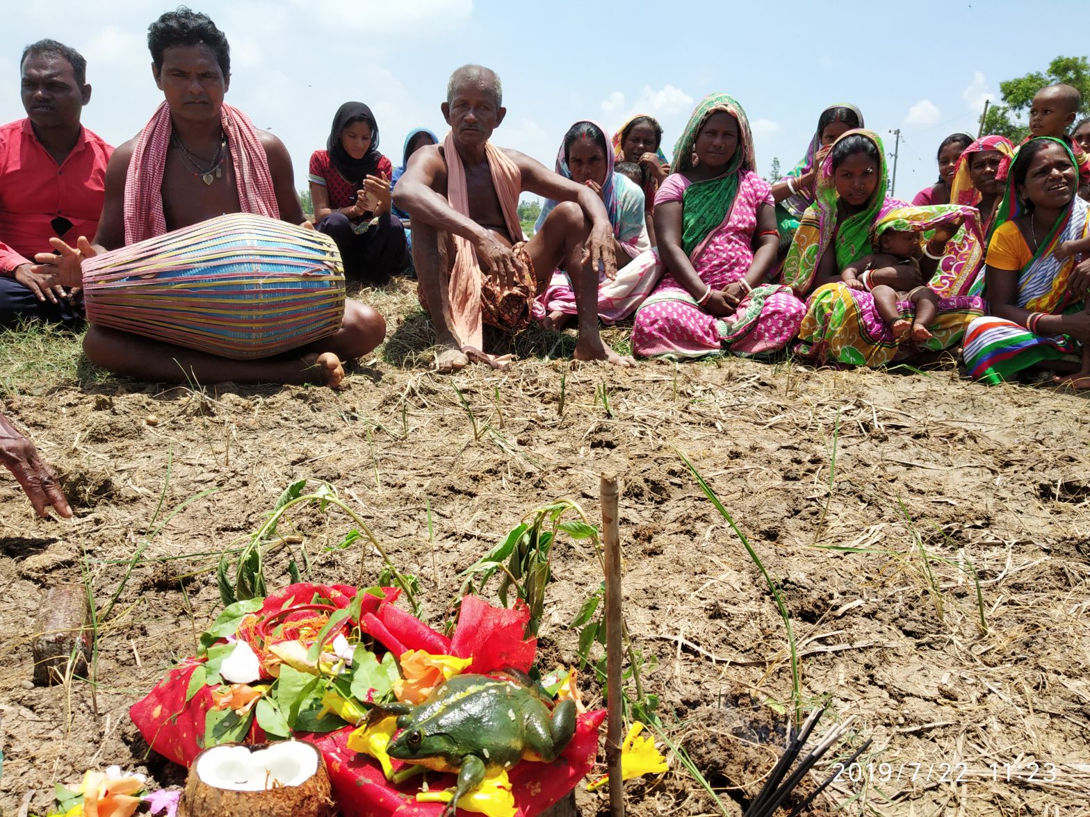 ଏନେଇ ମହାକାଳପଡା ବ୍ଲକ ଅନ୍ତର୍ଗତ ବଉଳକଣୀ ପଞ୍ଚାୟତରେ ବସବାସ କରୁଥିବା ବାଘୁଆମେଦ ଆଦିବାସୀପଡ଼ାର ଲୋକେ ବେଙ୍ଗ ଓ ବେଙ୍ଗୁଲୀଙ୍କ ପୂଜାର୍ଚ୍ଚନା କରିଥିଲେ। ସେମାନଙ୍କ ପୂଜା କଲେ ଭଲ ବର୍ଷା ହେବ ବୋଲି ଏହି ଆଦିବାସୀ ସମ୍ପ୍ରଦାୟର ଲୋକଙ୍କ ବିଶ୍ୱାସ ରହିଛି। ଏହି ବିଶ୍ୱାସରେ ପଡ଼ାରେ ବସବାସ କରୁଥିବା ୮୦ରୁ ଊର୍ଦ୍ଧ୍ୱ ପରିବାରର କିଛି ମହିଳା ଓ ମୁରବୀ ଏକତ୍ର ହୋଇ ବେଙ୍ଗ, ବେଙ୍ଗୁଲିକୁ ଧରି ଚାଷ ଜମିର ମଧ୍ୟସ୍ଥଳରେ ରଖି ପୂଜାର୍ଚ୍ଚନା କରିଥିଲେ। ବେଙ୍ଗ,ବେଙ୍ଗୁଲୀକୁ ଧରିବା ପରେ ସେମାନଙ୍କ ମୁଣ୍ଡରେ ସିନ୍ଦୁର ମାରି ପିଢ଼ାରେ ବସାଇ ପୂଜା କରିଥିଲେ। ଶଙ୍ଖ, ଘଣ୍ଟ ଓ ମୃଦଙ୍ଗ ଆଦି ବଜାଇ ଗୀତ ଗାଇବା ସହ ନାଚିଥିଲେ। ପୂଜା ସରିବା ପରେ ଗ୍ରାମର କିଛି ମହିଳା ବେଙ୍ଗ ଓ ବେଙ୍ଗୁଲୀକୁ ନେଇ ଏକ ଜଳାଶୟରେ ଛାଡ଼ି ଦେଇଥିଲେ। ଏହି ପୂଜାରେ ଗ୍ରାମରେ ରବୀନ୍ଦ୍ର ସିଂ, ପୂର୍ଣ୍ଣ ସିଂ, ଗୀତା ସିଂ, ସାବିତ୍ରୀ ସିଂ, କୁନି ସିଂ, ସୁଲୋଚନା ସିଂ ଏବଂ ରାମ ସିଂ ପ୍ରମୁଖ ସାମିଲ ହୋଇଥିଲେ।