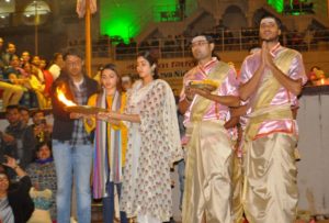 ଗଙ୍ଗାମାତାଙ୍କ ପୂଜାର୍ଚ୍ଚନା କରି ଆଶୀର୍ବାଦ ଭିକ୍ଷା କରିଛନ୍ତି। ଗଙ୍ଗା ସେବା ନିଧିର ଅଧ୍ୟକ୍ଷ ସୁଶାନ୍ତ ମିଶ୍ର, ସଚିତ ହନୁମାନ ଯାଦବ ଅଙ୍ଗବସ୍ତ୍ର ଏବଂ ମାନପତ୍ର ଦେଇ ଜାହ୍ନବୀଙ୍କୁ ସ୍ବାଗତ କରିଛନ୍ତି।