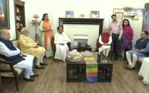 ନୁଆଦିଲ୍ଲୀ,୮।୧୧: ରାମ ମନ୍ଦିର ଆନ୍ଦୋଳନରେ ନେତୃତ୍ୱ ନେଇଥିବା ତଥା ପୂର୍ବତନ ଉପପ୍ରଧାନମନ୍ତ୍ରୀ ଲାଲକୃଷ୍ଣ ଆଡଭାନୀ ଶୁକ୍ରବାର ୯୨ତମ ବର୍ଷ ବୟସରେ ପର୍ଦାପଣ କରିଛନ୍ତି। ଭାଜପାର ଆଉ ଜଣେ ଲୌହ ପୁରୁଷ କୁହାଯାଉଥିବା ଆଡଭାନୀଙ୍କୁ ପ୍ରଧାନମନ୍ତ୍ରୀ ନରେନ୍ଦ୍ର ମୋଦି ଶୁଭେଚ୍ଛା ଜଣାଇବାକୁ ତାଙ୍କ ବାସଭବନରେ ପହଞ୍ଚିଥିଲେ। ଏହି ଅବସରରେ ସ୍ବରାଷ୍ଟ୍ର ମନ୍ତ୍ରୀ ଅମିତ ଶାହ, ଉପରାଷ୍ଟ୍ରପତି ଭେଙ୍କେୟା ନାଇଡୁ ଓ ଭାଜପାର କାର୍ଯ୍ୟକାରୀ ଅଧ୍ୟକ୍ଷ ଜେପି ନଡ୍ଡା ମଧ୍ୟ ଉପସ୍ଥିତ ରହିଥିଲେ। ଏହା ପୂର୍ବରୁ ପ୍ରଧାନମନ୍ତ୍ରୀ ମୋଦି ଟ୍ବିଟ କରି ଶୁଭେଚ୍ଛା ଜଣାଇଥିଲେ।