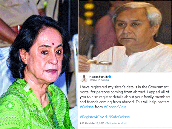 ଭୁବନେଶ୍ୱର,୧୮।୩(ବ୍ୟୁରୋ): କରୋନା ସତର୍କତାମୂଳକ ପଦକ୍ଷେପସ୍ବରୂପ ରାଜ୍ୟ ସରକାରଙ୍କ ପକ୍ଷରୁ ବିଦେଶ ଫେରନ୍ତାଙ୍କ ପାଇଁ ପଞ୍ଜୀକରଣକୁ ବାଧ୍ୟତାମୂଳକ କରାଯାଇଛି। ଏହି କ୍ରମରେ ମୁଖ୍ୟମନ୍ତ୍ରୀ ନବୀନ ପଟ୍ଟନାୟକ ଭଉଣୀ ଗୀତା ମେହେଟ୍ଟାଙ୍କ ନାମ ସରକାରୀ ପୋର୍ଟାଲରେ ବୁଧବାର ପଞ୍ଜୀକୃତ କରିଛନ୍ତି। ଏହାଛଡ଼ା ବିଦେଶରୁ ଆସୁଥିବା ସମସ୍ତଙ୍କ ପରିବାର ସଦସ୍ୟ ଓ ବନ୍ଧୁମାନଙ୍କ ବିଷୟରେ ସବିଶେଷ ତଥ୍ୟ ଦେବାକୁ ମୁଖ୍ୟମନ୍ତ୍ରୀ ଟୁଇଟ୍ ଯୋଗେ ନିବେଦନ କରିଛନ୍ତି। ଏହାଦ୍ୱାରା ଓଡ଼ିଶାକୁ କରୋନା ଭୂତାଣୁରୁ ରକ୍ଷା କରିବାରେ ସାହାଯ୍ୟ କରିହେବ ବୋଲି ସେ କହିଛନ୍ତି।