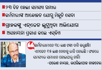 ତାଳଚେର ବିଦ୍ୟୁତ୍ ସବଡିଭିଜନ ଅଧୀନରେ ତାଳଚେର, ବଲଣ୍ଡା, ସମଲ, କଣିହାଁ, ହାଟତୋଟା ଅଞ୍ଚଳ ରହିଛି। ପ୍ରାୟ ୩୫ ହଜାର ଉପଭୋକ୍ତା ଏହି ସବ୍ଡିଭିଜନ ଉପରେ ନିର୍ଭରଶୀଳ। ଅଞ୍ଚଳରୁ ମାସକୁ ରାଜସ୍ବ ଆଦାୟ ପ୍ରାୟ ୩ କୋଟି ଟଙ୍କା। ୨୦୧୨ରୁ ବିଦ୍ୟୁତ୍ ବଣ୍ଟନ ସହଭାଗିତାରେ ଏନ୍ଜେନ କମ୍ପାନୀ ତାଳଚେରରେ କାମ କରୁଛି। ହେଲେ ଲୋକଙ୍କୁ ଉନ୍ନତମାନର ସେବା ଯୋଗାଇବାେରେ ଏନ୍ଜେନ୍ ବିଫଳ ବୋଲି ଅଭିଯୋଗ ହୋଇଆସୁଛି। ଚୋରି ଓ କ୍ଷତି କମିବା ପରିବର୍ତ୍ତେ ବଢି ଚାଲୁଛି। ଗତ ଏପ୍ରିଲ ୨୨ରେ ହାଟତୋଟା ରାସ୍ତାରେ ବିଦ୍ୟୁତ୍ ଖୁଣ୍ଟରେ ଚଢି ମରାମତି କାମ କରୁଥିବା ବେଳେ ରାସୋଳର ଅଭିଜିତ ସାହୁ ନାମକ ଜଣେ ଠିକା ଶ୍ରମିକଙ୍କ ମୃତ୍ୟୁ ଘଟିଥିଲା। ମୃତ କର୍ମଚାରୀଙ୍କ ପରିବାରକୁ ୩୦ ଲକ୍ଷ ଟଙ୍କା କ୍ଷତିପୂରଣ ଓ ଜଣଙ୍କୁ ନିଯୁକ୍ତି ପାଇଁ କର୍ମଚାରୀମାନେ ଦାବି କରିଥିଲେ। ହେଲେ କ୍ଷତିପୂରଣ ନ ମିଳିବାରୁ ସେହିଦିନଠାରୁ ଚାଇଁପାଳ ଡିଭିଜନରେ କାର୍ଯ୍ୟରତ ସମସ୍ତ ଏନଜେନ୍ କର୍ମଚାରୀ କାର୍ଯ୍ୟବନ୍ଦ ଆନ୍ଦୋଳନ ଚଳାଇଛନ୍ତି। ଫଳରେ ଏଠାରେ ବିଦ୍ୟୁତ୍ ସମସ୍ୟା ଗମ୍ଭୀର ହୋଇପଡିଛି। ସହର ଓ ଗ୍ରାମାଞ୍ଚଳରେ ୧୦ ଘଣ୍ଟାରୁ ଅଧିକ ସମୟ ଧରି ବିଦ୍ୟୁତ୍ ସେବା ବନ୍ଦ ରହୁଛି। ପ୍ରବଳ ଖରା ଓ ଗରମ ଯୋଗୁ ଲୋକେ ଘରେ କି ବାହାରେ ରହିପାରୁନାହାନ୍ତି। ବହୁ ଜରୁରୀ କାମ ହୋଇପାରୁନାହିଁ। କୌଣସି କାରଣରୁ ବିଦ୍ୟୁତ୍ ସଂଯୋଗ ବିଚ୍ଛିନ୍ନ ହୋଇଗଲେ ଏହାର ମରାମତି କରାଯାଉନାହିଁ। ସେସୁର କେତେଜଣ କର୍ମଚାରୀ କାମଚଳା ଭାବେ କାମ କରୁଥବାବେଳେ ଆବଶ୍ୟକ ସ୍ଥଳେ ସେମାନେ ଖୁଣ୍ଟରେ ଚଢି ବିଦ୍ୟୁତ ମରାମତି କରିବେ ନାହିଁ ବୋଲି ମନା କରି ଦେବାରୁ ସମସ୍ୟା ଆହୁରି ବଢିଛି। ଏନଜେନ କମ୍ପାନୀ କେବଳ ଜୁଲମ କରି ବିଦ୍ୟୁତ ବିଲ୍ ଆଦାୟକୁ ପ୍ରାଧାନ୍ୟ ଦେଉଥିବାବେଳେ ଲୋକେ ପ୍ରକୃତ ସେବା ପାଇପାରୁ ନ ଥିବା ଅଭିଯୋଗ ହୋଇଛି। ଏହାକୁ ନେଇ ଅସନ୍ତୋଷ ତୀବ୍ର ହେବାରେ ଲାଗିଛି।