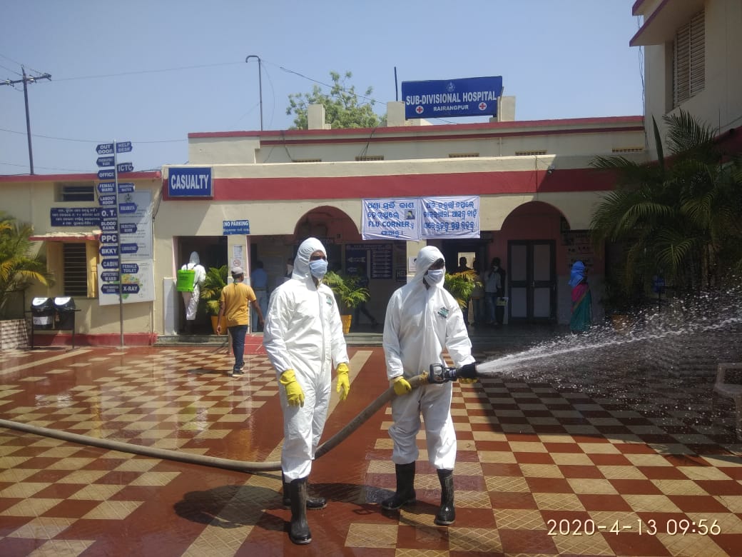 ରାଇରଙ୍ଗପୁର, ୧୩।୪(ଡି.ଏନ.ଏ.)-କରୋନା ଭୂତାଣୁ ରୋକିବା ସକାଶେ ସ୍ଥାନୀୟ ପ୍ରଶାସନ ପକ୍ଷରୁ ରାଇରଙ୍ଗପୁର ସହରାଞ୍ଚଳ ସମେତ ବିଭିନ୍ନ ପୁରପଲ୍ଲୀ ଅଞ୍ଚଳର ରାସ୍ତାଘାଟକୁ ସାନିଟାଇଜ୍ କରାଯାଇଛି। ରାଇରଙ୍ଗପୁର ଦମକଳବାହିନୀ ପକ୍ଷରୁ ସୋମବାର ରାଇରଙ୍ଗପୁର ହସ୍ପିଟାଲ ପରିସରର ବିଭିନ୍ନ ରୁମ୍ ସମେତ ଏହାର ପରିସରକୁ ମଧ୍ୟ ସାନିଟାଇଜ୍ କରାଯାଇଛି। ଏହାବ୍ୟତୀତ ସ୍ଥାନୀୟ ପୌର ପରିଷଦ କାର୍ଯ୍ୟାଳୟକୁ ମଧ୍ୟ ସାନିଟାଇଜ୍ କରାଯାଇଛି।