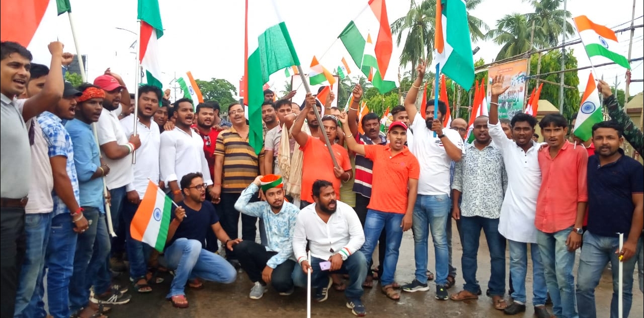 ବାଲେଶ୍ୱର ଅଫିସ/ସଜନାଗଡ଼,୧୫।୮(ଡି.ଏନ.ଏ.)- ବାଲେଶ୍ୱର ଜିଲା ଶ୍ରୀରାମ ସେନା ପକ୍ଷରୁ ବୁଧବାର ସନ୍ଧ୍ୟା ୬ଟା ସମୟରେ ତ୍ରିରଙ୍ଗା ଯାତ୍ରା ଅନୁଷ୍ଠିତ ହୋଇଥିଲା। ଗାନ୍ଧୀ ସ୍ମୃତି ଭବନଠାରୁ ଶୋଭାଯାତ୍ରା ବାହାରି ସହର ପରିକ୍ରମା କରିଥିଲା। ଶତାଧିକ ଯୁବକ ହାତରେ ତ୍ରିରଙ୍ଗା ପତାକା ଧରି ‘ଭାରତ ମାତା କି ଜୟ’ ନାରା ଦେଇ ଶୋଭାଯାତ୍ରାରେ ସାମିଲ ହୋଇଥିଲେ। ସମଗ୍ର ଦେଶରେ ଶାନ୍ତି, ମୈତ୍ରୀ, ଏକତା ବଜାୟ ରଖିବା ଉଦ୍ଦେଶ୍ୟରେ ଆୟୋଜିତ ଏହି ତ୍ରିରଙ୍ଗା ଯାତ୍ରା ଅବସରରେ ଦୀର୍ଘ ୭୦ ବର୍ଷ ପରେ ଜମ୍ମୁ-କଶ୍ମୀର ପ୍ରସଙ୍ଗ ନେଇ ୩୭୦ ଧାରା ଉଚ୍ଛେଦ କରାଯାଇଥିବାରୁ ପ୍ରଧାନମନ୍ତ୍ରୀ ମୋଦିଙ୍କୁ ଶୁଭେଚ୍ଛା ଜ୍ଞାପନ କରାଯାଇଥିଲା। ଚିତ୍ତରଞ୍ଜନ ପଣ୍ଡା, ରାଜେଶ ମହାପାତ୍ର ଏହି ଯାତ୍ରାର ନେତୃତ୍ୱ ନେଇଥିଲେ।