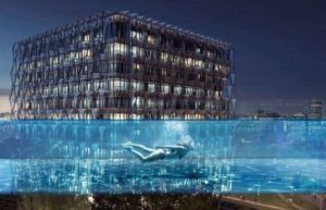 ଯାହା ଦେଖିବାକୁ ଖୁବ୍ ଆକର୍ଷଣୀୟ। ଏହାର ଗଭୀର ୩ ମିଟର ଏବଂ ଲମ୍ବ ୨୫ ମିଟର। ତଳେ ଠିଆ ହୋଇ ପୁଲ୍କୁ ଚାହିଁଲେ ସନ୍ତରଣକାରୀଙ୍କୁ ବେଶ୍ ଭଲ ଭାବେ ଦେଖି ହେବ। ପୁଲ୍ର ଉପଯୋଗକର୍ତ୍ତା ଦୁଇ କୋଠା ମଝିରେ ପହଁରିବା ପାଇଁ ଅନୁମତି ମଧ୍ୟ ଦେଇ ସାରିଛନ୍ତି। କାରଣ ଡବଲ ପର୍ସ ଅନୁସାରେ ଏହାର ନିର୍ମାଣ କରାଯାଇଛି।