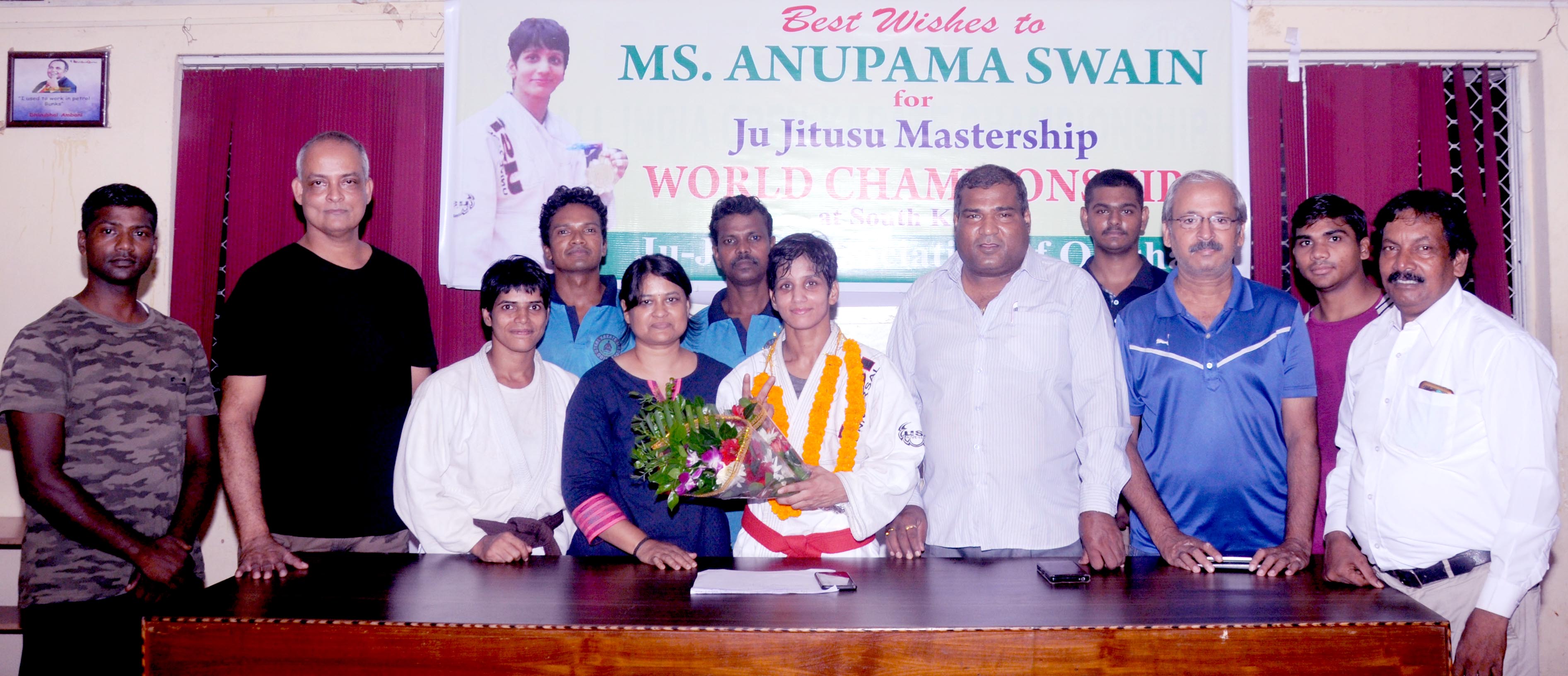 ବିଶ୍ୱ ସଂଘଦ୍ୱାରା ଅନୁପମାଙ୍କୁ ବିଶ୍ୱର ଜଣେ ଏଲାଇଟ ଖେଳାଳିଭାବେ ସ୍ବିକୃତି ମିଳିଥିବାରୁ ତାଙ୍କର ସମସ୍ତ ଖର୍ଚ୍ଚ ଓ୍ବାଲର୍ଡ ମାର୍ଶାଲ ଆର୍ଟ ମାଷ୍ଟରଶିପ୍ ଆୟୋଜକ କମିଟି ବହନ କରୁଛି। ଓଡ଼ିଶା ପୋଲିସରେ କାର୍ଯ୍ୟରତ ଅନୁପମା ଜଣେ ଅନ୍ତର୍ଜାତୀୟ କରାଟେ ଖେଳାଳି ହେବା ସହ ଶକ୍ତିଉତ୍ତୋଳନରେ ଏସିଆ ଚାମ୍ପିୟନ, ଜୁଜୁଟ୍ସୁରେ ବିଶ୍ୱମାନ୍ୟତାପ୍ରାପ୍ତ ଥାଇଲାଣ୍ଡ ଓପନରେ ସ୍ବର୍ଣ୍ଣ ପଦକ ବିଜୟିନୀ। ସୋମବାର ସନ୍ଧ୍ୟାରେ ଉତ୍କଳ କରାଟେ ସ୍କୁଲ ଓ ଜୁଜୁଟ୍ସୁ ଆସୋସିଏଶନ ଅଫ୍ ଓଡ଼ିଶା ପକ୍ଷରୁ ଅବିନାଶ ପୁନ୍ଦିର, ଗୌରୀ ମହାନ୍ତି, ଚିତ୍ତରଞ୍ଜନ ସ୍ବାଇଁ, ଡ. ହରିପ୍ରସାଦ ପଟ୍ଟନାୟକ ଏବଂ ଖେଳାଳିମାନେ ଉପସ୍ଥିତ ରହି ଅନୁପମାଙ୍କୁ ସମ୍ବର୍ଦ୍ଧିତ କରିବା ସହ ଆଗାମୀ ପ୍ରତିଯୋଗିତା ପାଇଁ ଶୁଭେଚ୍ଛା ଜଣାଇଛନ୍ତି।