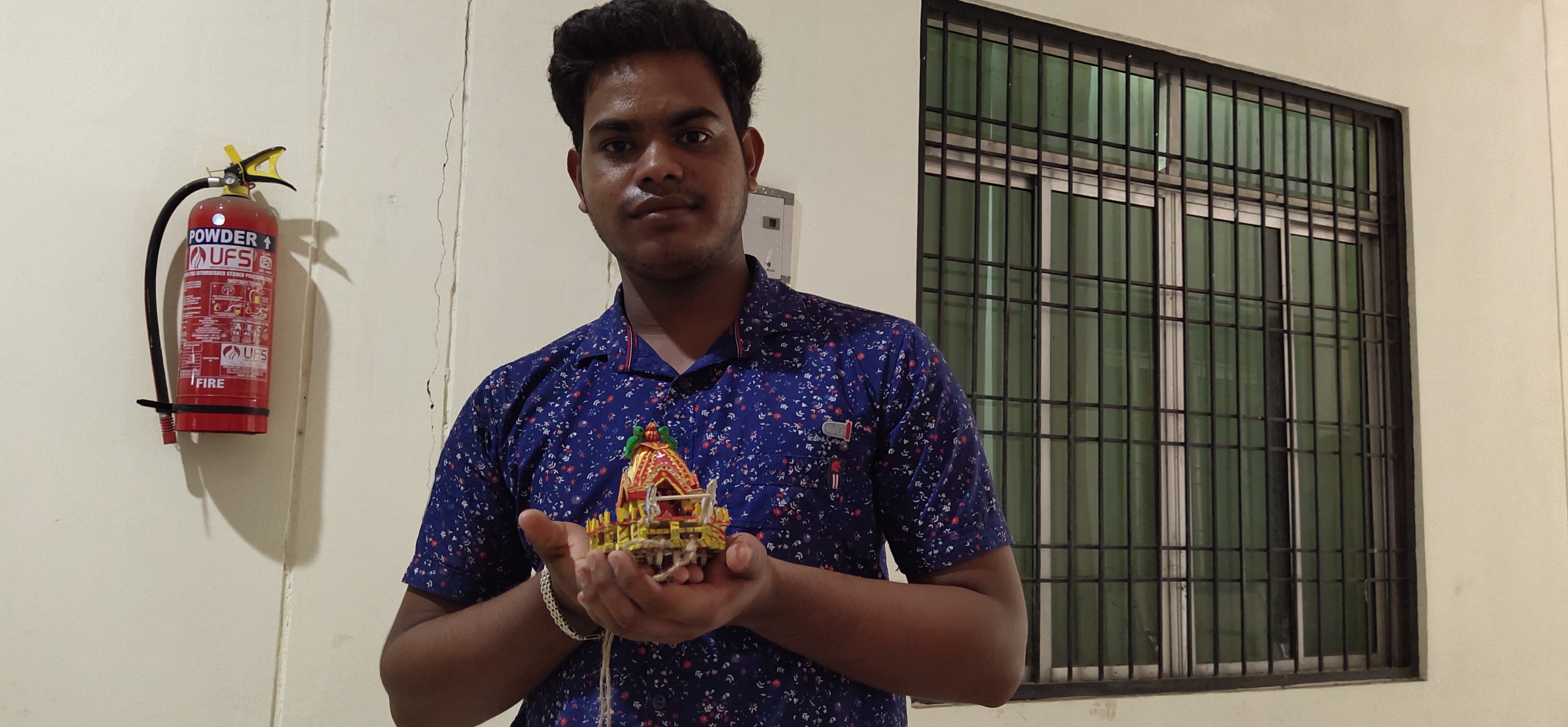 ଅନୁଗୋଳ ଅଫିସ, ୨୬।୬- ମାତ୍ର ୨୦ ବର୍ଷ ବୟସରେ ବିଶ୍ୱ ରେକର୍ଡ ପାଇଁ ଉଦ୍ୟମ କରିଛନ୍ତି ଅନୁଗୋଳ ଜିଲା ଆଠମଲ୍ଲିକ ବ୍ଲକ କୁରୁମଟାପ ଗ୍ରାମର ଶିଳ୍ପୀ ରୁବେଲାଲ ପ୍ରଧାନ। ଜଣେ ବାଲୁକା ଶିଳ୍ପୀ ଭାବେ ସ୍ଥାନୀୟ ଅଞ୍ଚଳରେ ପରିଚିତ ହୋଇଥିଲେ ବି ଲିମ୍କା ବୁକ୍ ଅଫ୍ ରେକର୍ଡସ୍ରେ ସ୍ଥାନ ପାଇବାକୁ ସେ ୩.୫ ଇଞ୍ଚ ଉଚ୍ଚତାର ଜଗନ୍ନାଥଙ୍କ ନନ୍ଦିଘୋଷ ରଥର ଅବିକଳ ନକଲ କାଠରେ ତିଆରି କରିଛନ୍ତି। ଏଥିପାଇଁ ତାଙ୍କୁ ୧୬ ଘଣ୍ଟାର ପରିଶ୍ରମ କରିବାକୁ ପଡ଼ିଛି। ପୂର୍ବରୁ ବିଶ୍ୱର ସବୁଠାରୁ ଛୋଟ ରଥର ଉଚ୍ଚତା ୪.୫ ଇଞ୍ଚ ଥିବାରୁ ତାଙ୍କ ରଥକୁ ଲିମ୍କା ବୁକ୍ରେ ସ୍ଥାନିତ ପାଇଁ ପଠାଇବେ ବୋଲି ରୁବେଲାଲ ପ୍ରକାଶ କରିଛନ୍ତି।