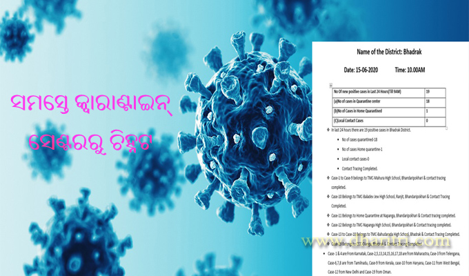 ଭଦ୍ରକ ଅଫିସ,୧୫ା୬ : ସୋମବାର ଭଦ୍ରକ ଜିଲାରୁ ୧୯ କରୋନା ଆକ୍ରାନ୍ତ ଚି଼ହ୍ନଟ ହୋଇଛନ୍ତି। ଏହାକୁ ମିଶାଇ ଜିଲାରେ ଆକ୍ରାନ୍ତଙ୍କ ସଂଖ୍ୟା ୧୭୭ ଛୁଇଁଛି। ଏମାନଙ୍କ ମଧ୍ୟରୁ ୧୫୧ ସୁସ୍ଥ ହୋଇଥିବା ବେଳେ ୨୬ ଜଣ ଚିକିତ୍ସାଧୀନ ଅଛନ୍ତି। ଆକ୍ରାନ୍ତଙ୍କ ମଧ୍ୟରୁ କର୍ନାଟକ, ମହାରାଷ୍ଟ୍ର, ତେଲେଙ୍ଗାନା, ଦିଲ୍ଲୀ, ତାମିଲନାଡୁ, କେରଳ, ହରିୟାଣା, କୋଲକାତା, ପଶ୍ଚିମବଙ୍ଗ, ଓମାନ ଫେରନ୍ତା ବୋଲି ଜଣାପଡ଼ିଛି। ସମସ୍ତେ କ୍ୱାରାଣ୍ଟାଇନ୍ ସେଣ୍ଟରରୁ ଚିହ୍ନଟ ହୋଇଥିବା ଜିଲା ପ୍ରଶାସନ ସୂଚନା ଦେଇଛି।