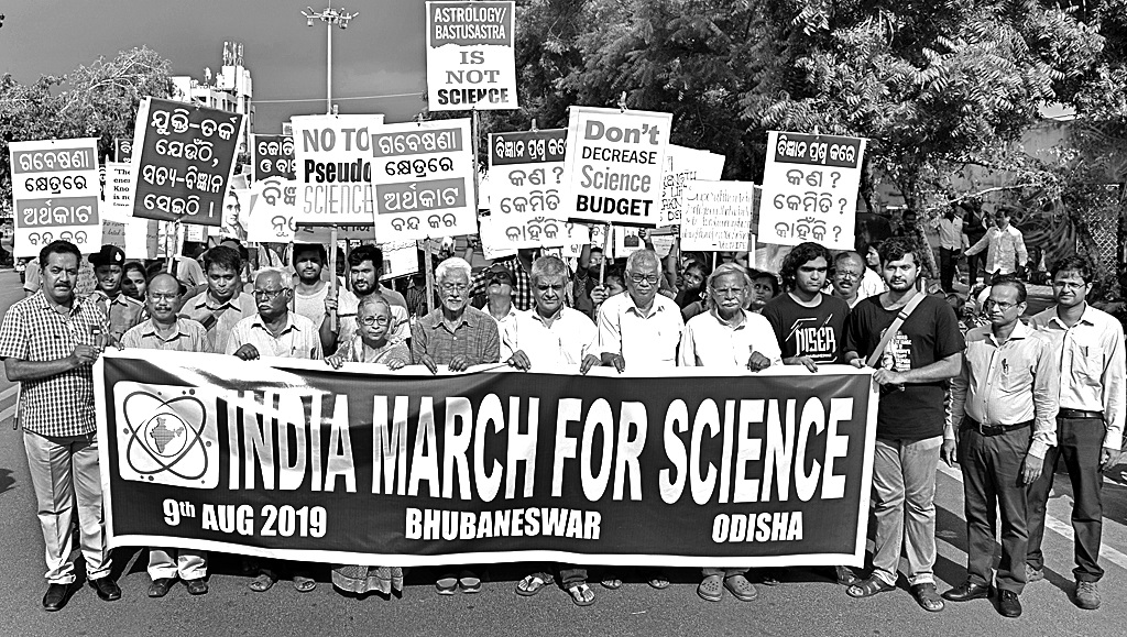 ଭୁବନେଶ୍ୱର, ୧୦ା୮(ବ୍ୟୁରୋ): ଭୁବନେଶ୍ୱର ସମେତ ଦେଶର ପ୍ରାୟ ୮୦ଟି ସହରରେ ହଜାର ହଜାର ସଂଖ୍ୟାରେ ବୈଜ୍ଞାନିକ, ଗବେଷକ ତଥା ବିଜ୍ଞାନପ୍ରେମୀ ଛାତ୍ରୀଛାତ୍ରଙ୍କ ସହ ‘ଭାରତର ବିଜ୍ଞାନ ଅଭିମୁଖୀ ଜନଯାତ୍ରା’ ପାଳନ କରିଛନ୍ତି। ଜନଗଣ ସମାଜର ବୈଜ୍ଞାନିକ ଚିନ୍ତାର ପ୍ରଚାର-ପ୍ରସାର କରିବା ଓ ପ୍ରଚଳିତ ନାନାବିଧ ବିଭିନ୍ନ ଅନ୍ଧ ବିଶ୍ୱାସକୁ ଦୂର କରିବା ପାଇଁ ଏହି ଜନଯାତ୍ରାର ଆୟୋଜନ କରାଯାଇଛି। ଶୁକ୍ରବାର ଏ ପରିପ୍ରେକ୍ଷୀରେ ଆଇଓପି, ନାଇଜର, ଆଇଆଇଟି ଓ ଉତ୍କଳ ବିଶ୍ୱବିଦ୍ୟାଳୟର ବହୁ ବୈଜ୍ଞାନିକ ଏବଂ ଗବେଷକମାନଙ୍କ ସହ ସହରର ବହୁ ସ୍କୁଲ, କଲେଜର ଛାତ୍ରୀଛାତ୍ରମାନେ ଶହ ଶହ ସଂଖ୍ୟାରେ ଶୋଭାଯାତ୍ରାରେ ଯୋଗ ଦେଇଥିଲେ। ଆଇନଷ୍ଟାଇନ, ସି.ଭି ରମଣ, ମେଘନାଦ ଶାହା, ମ୍ୟାଡାମ କ୍ୟୁରି ଓ ଷ୍ଟିଫେନ୍ ହକିଂଙ୍କ ପରି ବହୁ ପ୍ରକ୍ଷାତ ବୈଜ୍ଞାନିକଙ୍କର ଫଟୋଚିତ୍ର ଓ ଉଦ୍ଧୃତି ସମ୍ବଳିତ ପୋଷ୍ଟରମାନ ଧରି ପିଲାମାନେ ବିଜ୍ଞାନକୁ ଏକ ଉତ୍ସବ ଭାବେ ପାଳନ କରିବାର ଦେଖାଯାଇଥିଲା। ଶୋଭାଯାତ୍ରା ରାମ ମନ୍ଦିର ଛକରୁ ବାହାରି ସଙ୍ଗୀତ ମହାବିଦ୍ୟାଳୟରେ ପହଞ୍ଚତ୍ବା ପରେ ସେଠାରେ ସଭାର ଆୟୋଜନ କରାଯାଇଥିଲା।