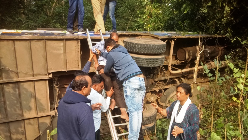 ନୂଆଗାଁ,୧।୧୨(ଡି.ଏନ୍.ଏ.): ନୟାଗଡ ଜିଲା ନୂଆଗାଁ ଥାନା ଖୋର୍ଦ୍ଧା-ବଲାଙ୍ଗୀର ଜାତୀୟ ରାଜପଥ ପଞ୍ଚୁପାଣ୍ଡବ ନିକଟସ୍ଥ ଜଙ୍ଗଲ ମଧ୍ୟରେ ରବିବାର ସକାଳେ ଭାରସାମ୍ୟ ହରାଇ ଏକ ଯାତ୍ରୀବାହୀ ବସ୍ ଓଲଟିପଡ଼ିଛି। ଏଥିରେ ବହୁ ଯାତ୍ରୀ ଆହତ ହୋଇଥିବା ବେଳେ ୨ ଜଣ ଗୁରୁତର ହୋଇଛନ୍ତି। ସମସ୍ତଙ୍କୁ ଉଦ୍ଧାର କରାଯାଇ ଜିଲା ମୁଖ୍ୟ ଚିକିତ୍ସାଳୟରେ ଭର୍ତ୍ତି କରାଯାଇଛି। ଉକ୍ତ ବସ୍ଟି ଭୁବନେଶ୍ୱରରୁ ଫୁଲବାଣୀ ଯାଉଥିବା ବେଳେ ଭାରସାମ୍ୟ ହରାଇ ରାସ୍ତା ପାର୍ଶ୍ୱକୁ ଓଲଟି ପଡ଼ିଥିଲା। ଖବରପାଇ ସ୍ଥାନୀୟ ଲୋକେ, ନୂଆଗାଁ, ନୟାଗଡ଼, ଦଶପଲ୍ଲା ଅଗ୍ନିଶମ କର୍ମଚାରୀ ପହଞ୍ଚି ଯାତ୍ରୀଙ୍କୁ ଉଦ୍ଧାର କରିଥିଲେ। ପରେ ସେମାନଙ୍କୁ ଚିକିତ୍ସାଳୟକୁ ନିଆଯାଇଥିଲା। ନୟାଗଡ଼ ଏସ୍ଡିପିଓ, ନୂଆଗାଁ ଆଇଆଇସି ଓ ପୋଲିସ ଘଟଣାସ୍ଥଳରେ ପହଞ୍ଚି ତଦନ୍ତ ଜାରି ରଖିଛନ୍ତି।