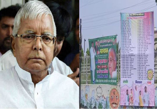 ପାଟନା,୧୧।୬: ରାଷ୍ଟ୍ରୀୟ ଜନତା ଦଳ(ଆର୍ଜେଡି) ସୁପ୍ରିମୋ ଲାଲୁ ପ୍ରସାଦ ଯାଦବ ୭୩ ବର୍ଷରେ ପଦାର୍ପଣ କରିଛନ୍ତି। ଏହାକୁ ନେଇ ଆର୍ଜେଡି ପକ୍ଷରୁ ପୋଷ୍ଟର ମାଧ୍ୟମରେ ଲାଲୁଙ୍କୁ ଶୁଭେଚ୍ଛା ଜଣାଇଛନ୍ତି ନେତା ତଥା କର୍ମୀ। କିନ୍ତୁ ବିରୋଧୀ (ଜେଡିୟୁ)ପୋଷ୍ଟର ମାଧ୍ୟମରେ ଲାଲୁଙ୍କୁ ଟାର୍ଗେଟ କରିଛି। ପୋଷ୍ଟର ମାଧ୍ୟମରେ ଜେଡିୟୁ ଲାଲୁଙ୍କ ୭୩ ସମ୍ପତ୍ତିର ବିବରଣୀ ଦେଇଛି। ବିଶେଷ କରି ଆର୍ଜେଡି ଯେଉଁଠି ପୋଷ୍ଟର ଲଗାଇଛି ସେହି ନିକଟରେ ଜେଡିୟୁ ପୋଷ୍ଟର ଲଗାଇ ଲାଲୁଙ୍କୁ ମହାନାୟକ ବୋଲି କହିଛି। ପାଟନାର ରାସ୍ତା କଡରେ ଲାଗିଥିବା ଏହି ପୋଷ୍ଟରକୁ ନେଇ ଚର୍ଚ୍ଚା ଯୋର ଧରିଛି। ଲାଲୁଙ୍କ ୭୩ ତମ ଜନ୍ମଦିନରେ ତାଙ୍କ ପରିବାରର ୭୩ ସମ୍ପତ୍ତିର ହିସାବ ଦିଆଯାଇଛି। ଆଗକୁ ଏ ସମ୍ପର୍କରେ ସୂଚନା ଦିଆଯିବ ବୋଲି ମଧ୍ୟ ଜେଡିୟୁ ପୋଷ୍ଟର ମାଧ୍ୟମରେ କହିଛି। ଏହାକୁ ନେଇ ଆର୍ଜେଡି ନେତା ବିଜୟ ପ୍ରକାଶ ପ୍ରଶ୍ନ କରିଛନ୍ତି ପୋଷ୍ଟରରେ ଦିଆଯାଇଥିବା ତଥ୍ୟର ଯାଞ୍ଚ କାହିଁକି କରାଯାଇ ନାହିଁ।